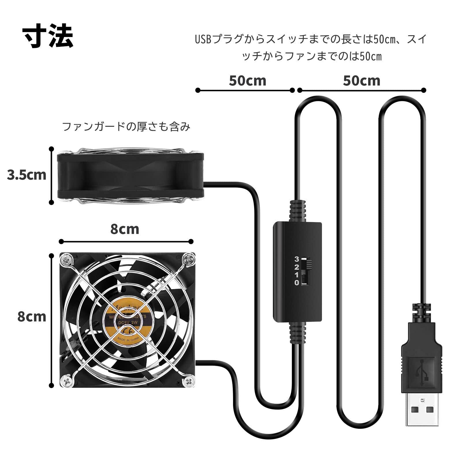 Mauknci usb ファン 静音 5v 3段階風量調整 usbファン 8cm 2連 長時間稼働用 小型 冷却ファン