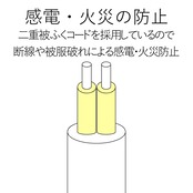 ■ 電源コードには一般社団法人日本配線システム工業会規格(JWDS0010)に適合した二重被ふくコードを採用しており、断線や被ふく破れによる感電・火災の防止に有効です。