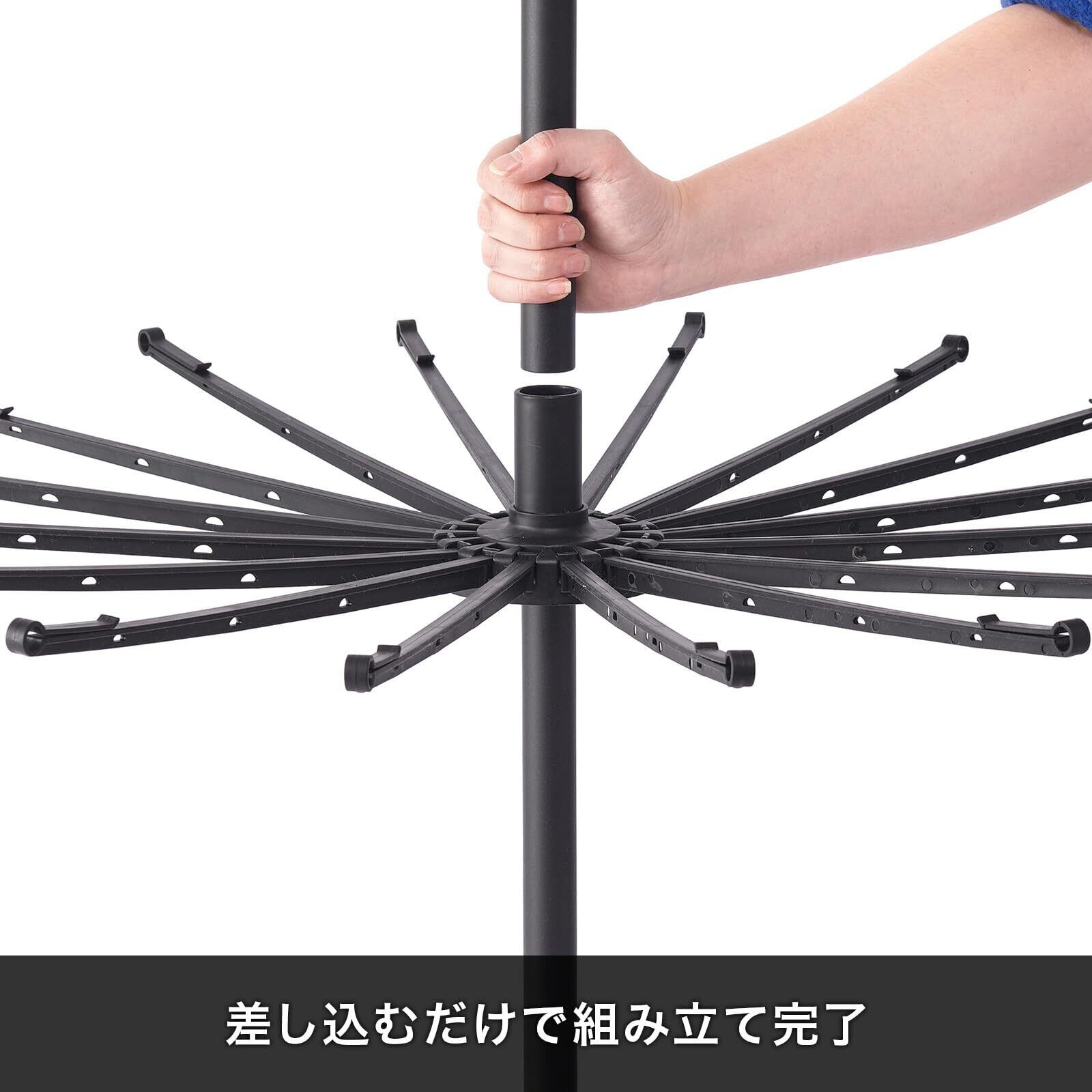 天馬(Tenma) 樹脂 どんなインテリアにもなじみやすいシックなデザインの物干し 洗濯 室内 部屋干し ブラック物干し パラソルスタンド3段 幅77×奥行77×高さ180cm PSBK-08 衣類