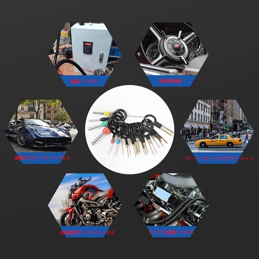 【多様なコネクターに対応した設計!】 : 本製品は、多様な車両に使用できるように考慮されています。異なるサイズや形状のピン抜きツールが揃っており、特定のコネクターにもスムーズに対応可能です。