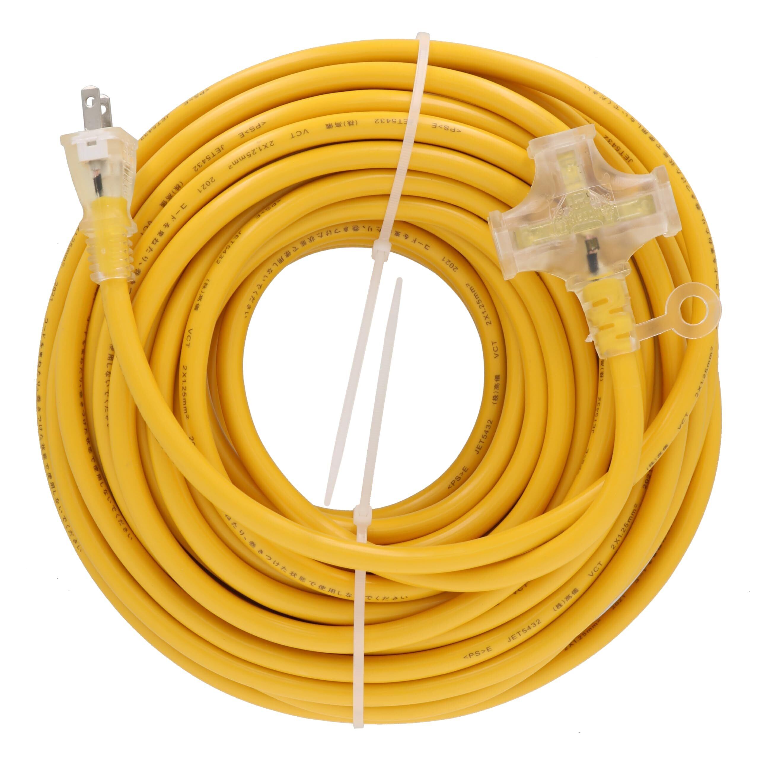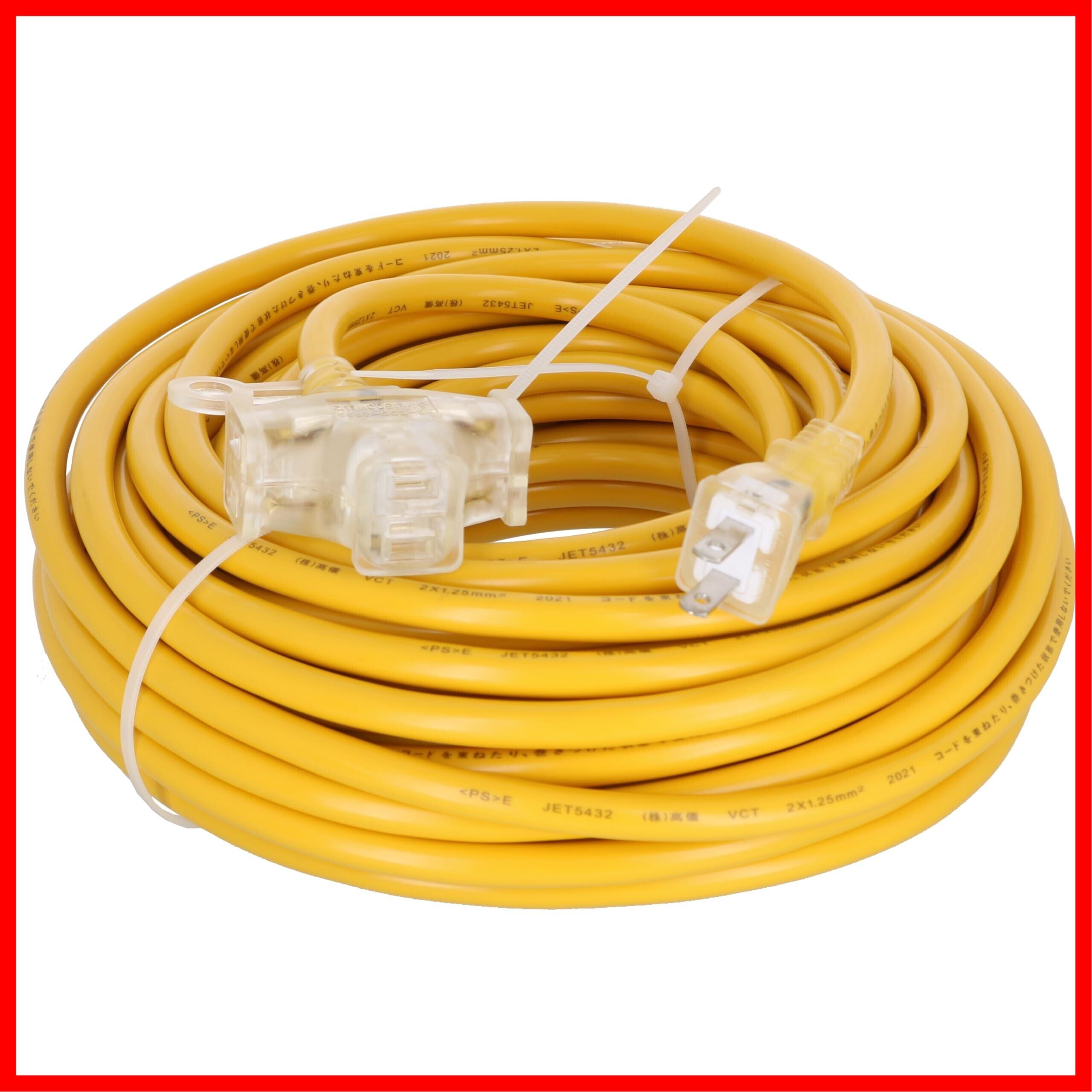 高儀(Takagi) M.M 延長コード 電源ケーブル 延長ケーブル 電源タップ トリプルタップ 電源コード 作業用 カラー ソフトタイプ 3口 1500Wまで 125V 15A 3個口 3分配 黄色コンセント コンセント たこあし 延長電源 電工 20m イエロー TG-COD-2003YA | hananoki