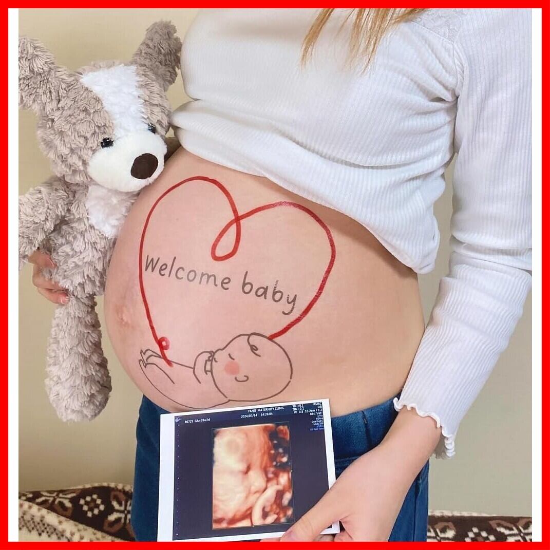 tuzuru マタニティフォト ベリーペイントシール ボディペイント タトゥーシール 天使 かわいい プレゼント マタニティシール 妊婦 セルフ フォト グッズ ハート マーク 練習用シール付き 貼り方説明書付き (ZP)