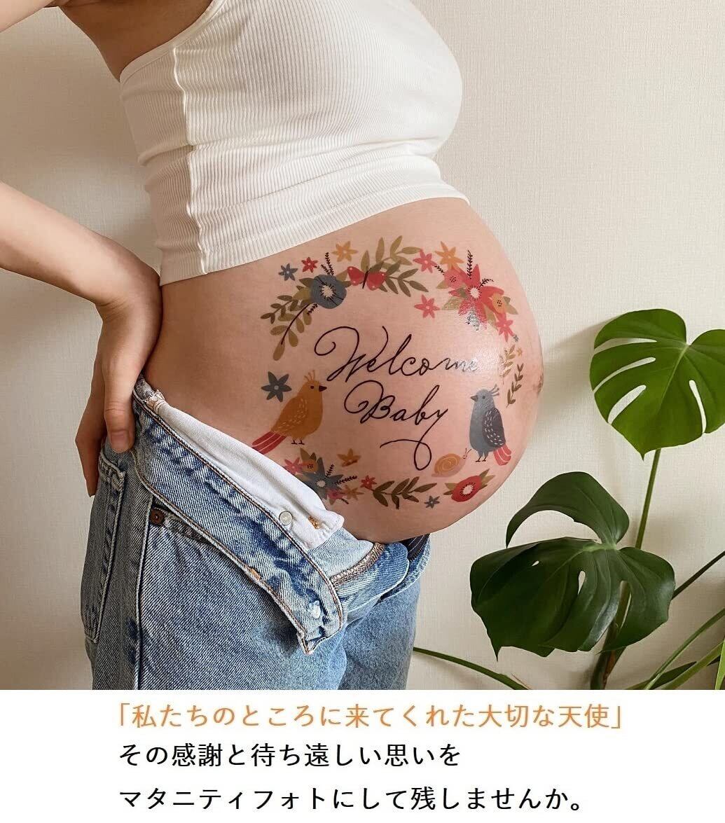 tuzuru マタニティフォト ベリーペイントシール 親子 タトゥーシール かわいい プレゼント マタニティシール 妊婦 セルフ フォト belly painting maternity photo 練習用シール付き 貼り方説明書付き (ZG) | hananoki
