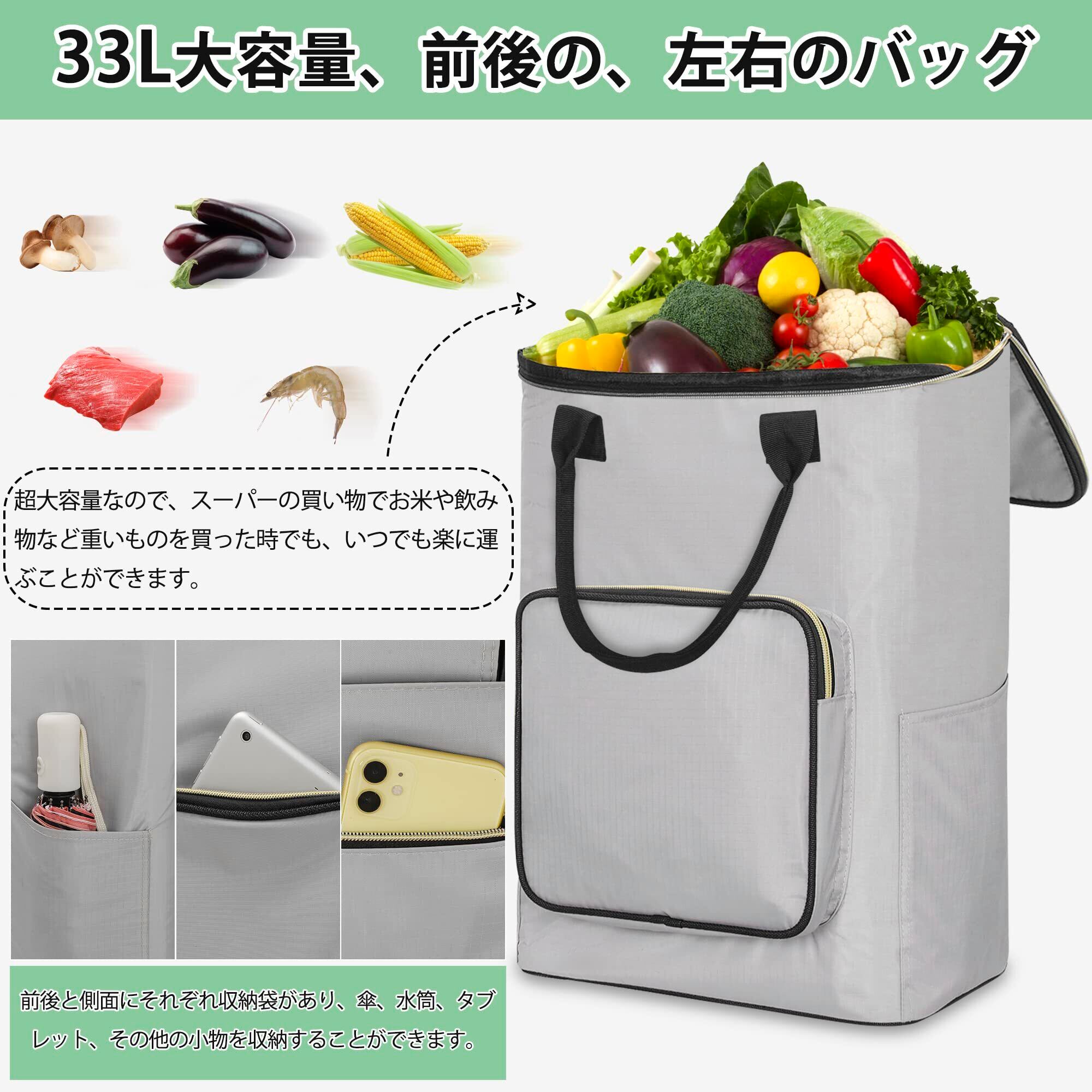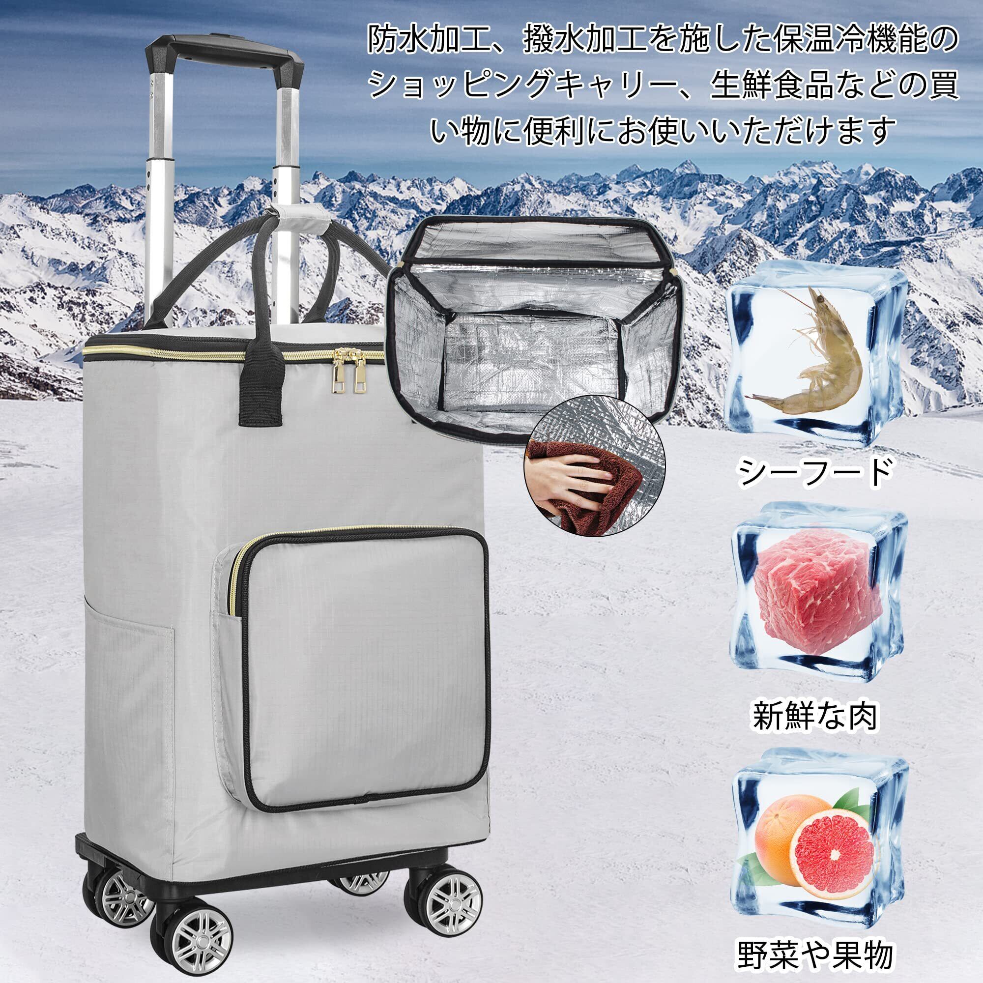 BQKOZFIN 4輪 ショッピングカート ショッピングキャリー 買い物カート 横押し可能 機内持ち込み 軽量 保温保冷 キャリーバッグ 2WAY (Lサイズ グレー)