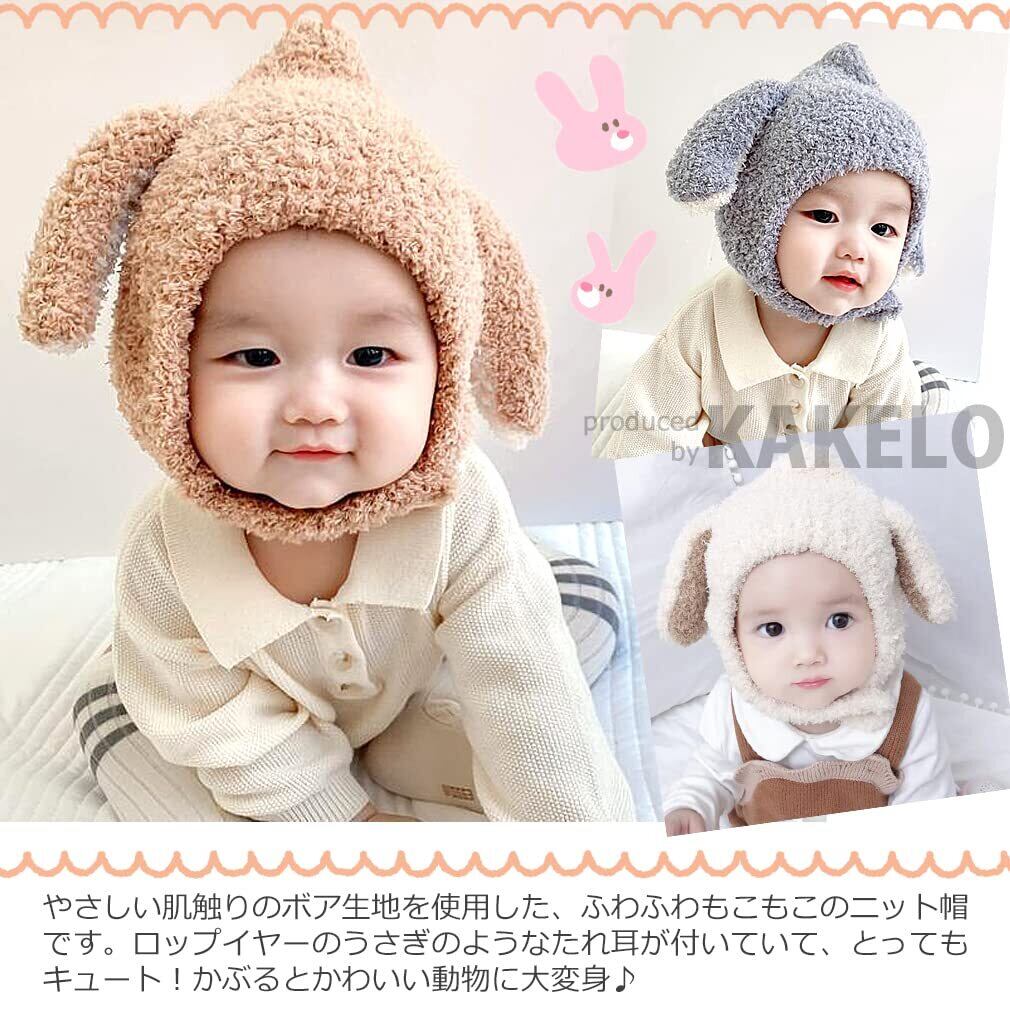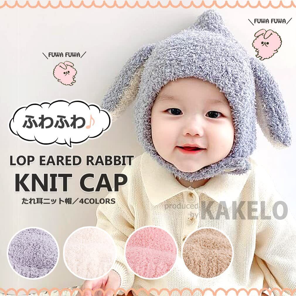 [KAKELO] カケロ ニット帽 赤ちゃん 帽子 うさぎ 耳付き 垂れ耳 ベビー キッズ 子ども あったか 防寒