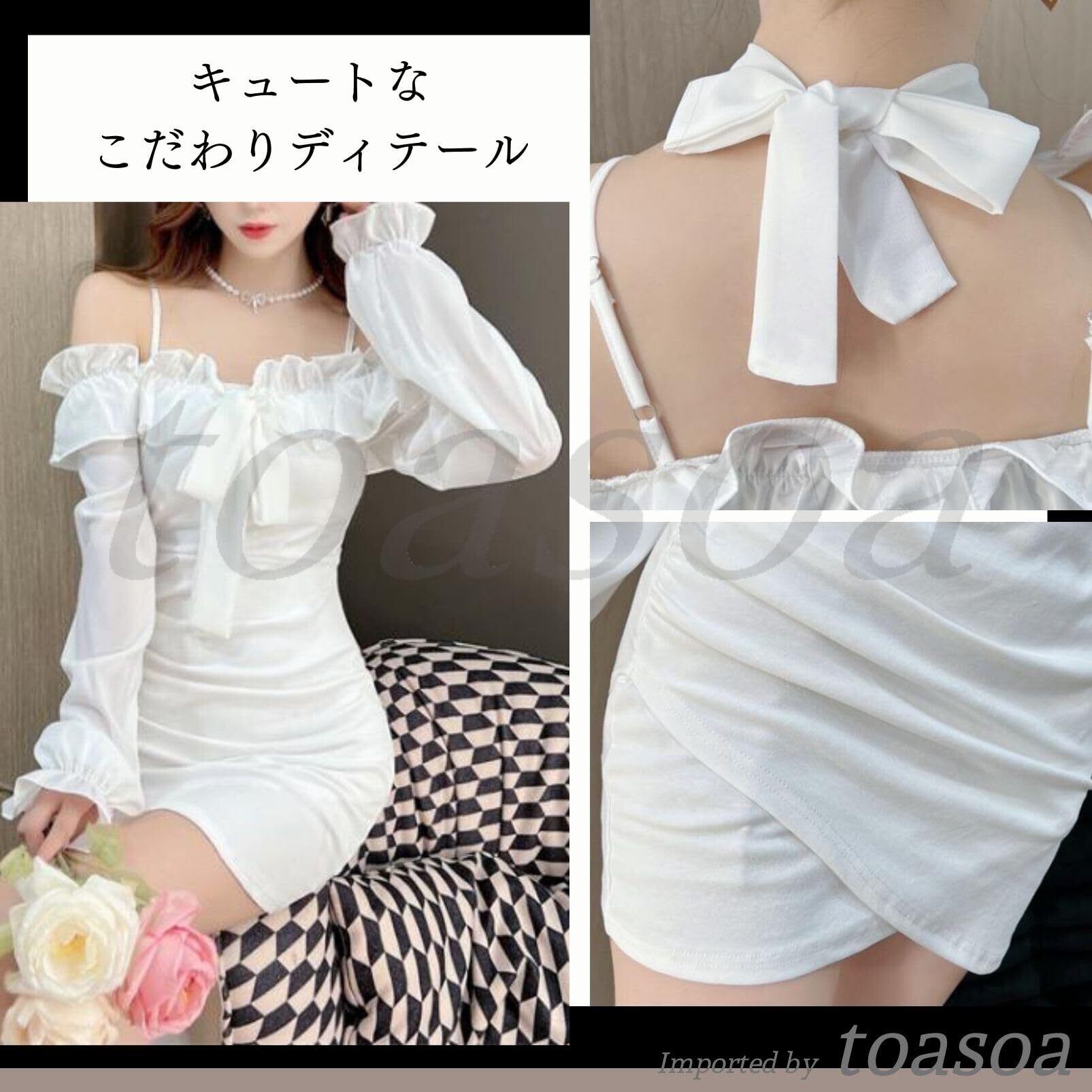 [トーアソーア] オフショルダー ワンピース セクシー レディース ミニ タイト フリル 2way ホルターネック リボン