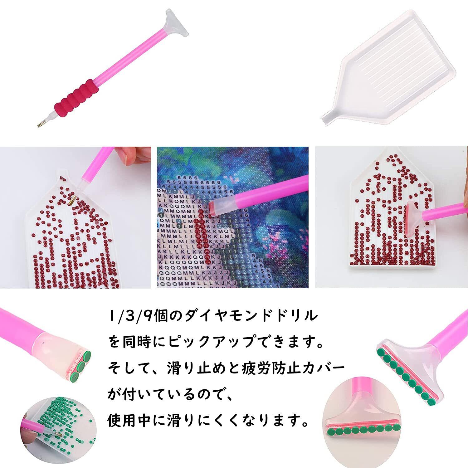 【ダイヤモンドセット内容】1x 5D DIYのダイヤモンドの絵画、1x ダイヤモンドキット、1x ダイヤモンド粘着ペン(2 個ペンアクセサリー )、1xトレー、1x滑り止めカバー、2x 糊(グルー)。ダイヤモンド粘着ペンは2本のペンアクセサリー付き、1/3/9個のダイヤモンドドリルを同時にピックアップできます。そして、滑り止めと疲労防止カバーが付いているので、使用中に滑りにくくなります。