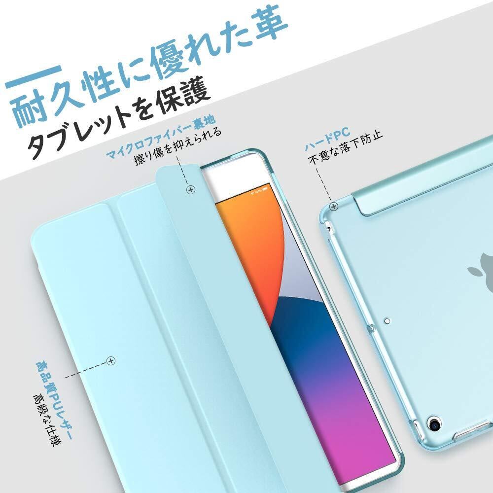 iPad 10.2 ケース Dadanism 第9/8/7世代 アップル iPad 10.2インチ 2021/2020/2019モデル 半透明 カバー スタンドケース オートスリープ機能 軽量 薄型 PU+PC マイクロファイバー裏地 耐久性 全面保護 スカイブルー | hananoki