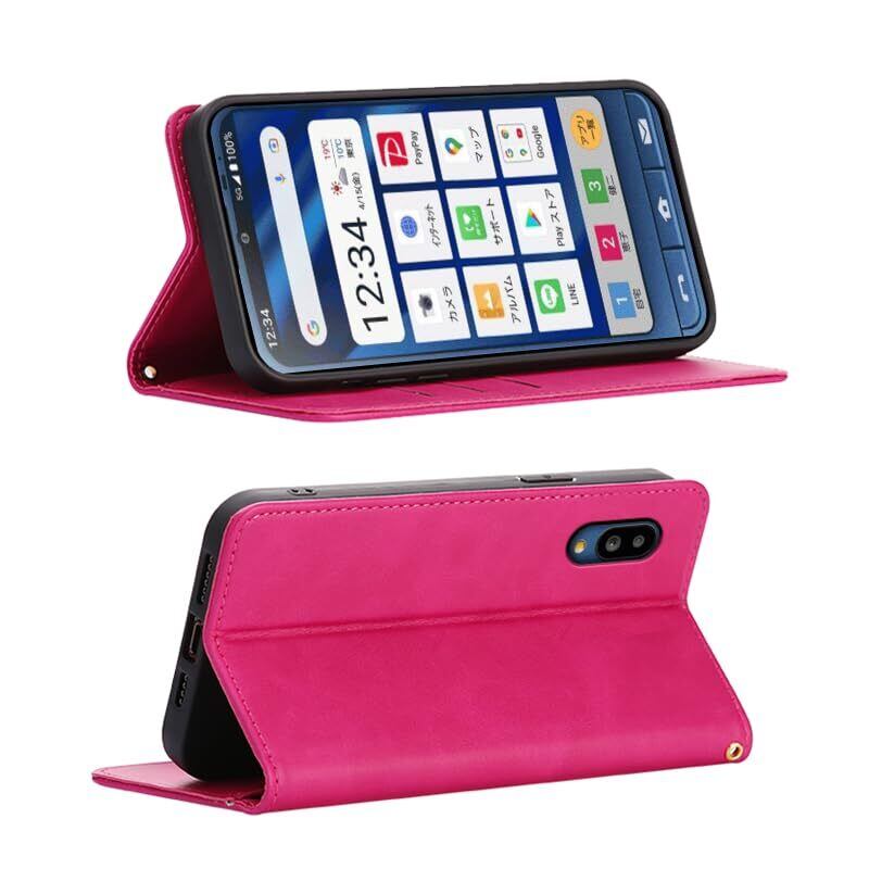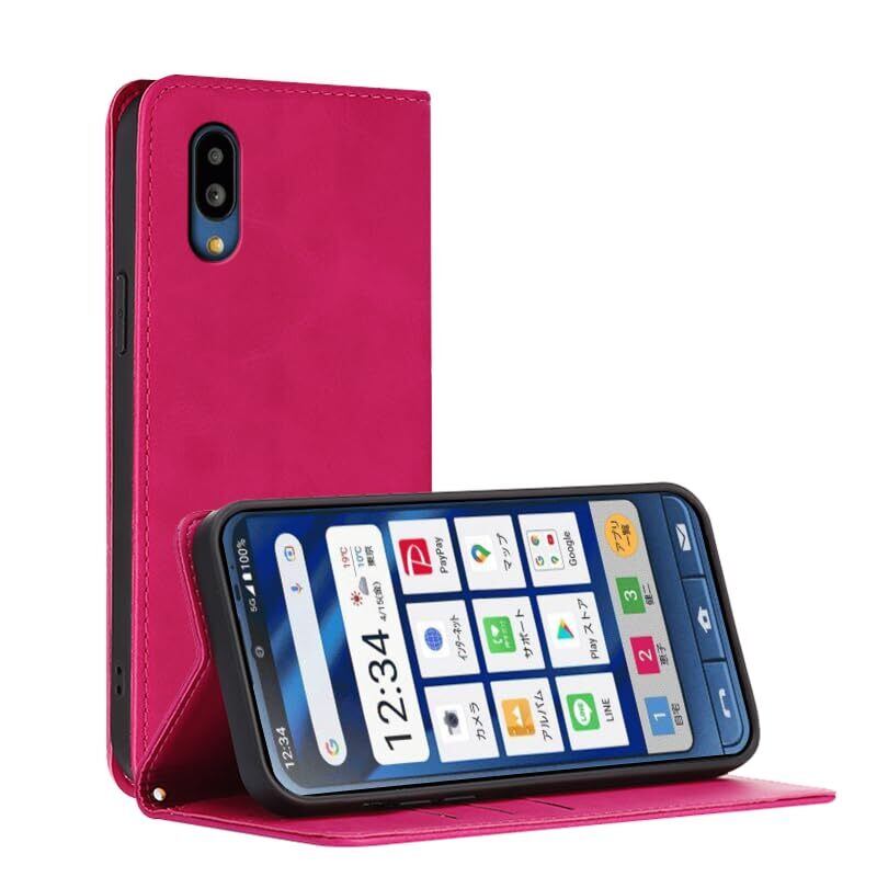 シンプルスマホ6 / シンプルスマホ7 ケース 手帳型 A201SH / simple sumaho6 / simple sumaho7 / BASIO active SHG09 / BASIO active2 SHG12 ケース 手帳型 カバー PUレザー カード収納 財布型 耐衝撃 ケース マグネット スタンド機能付き (ローズレッド)