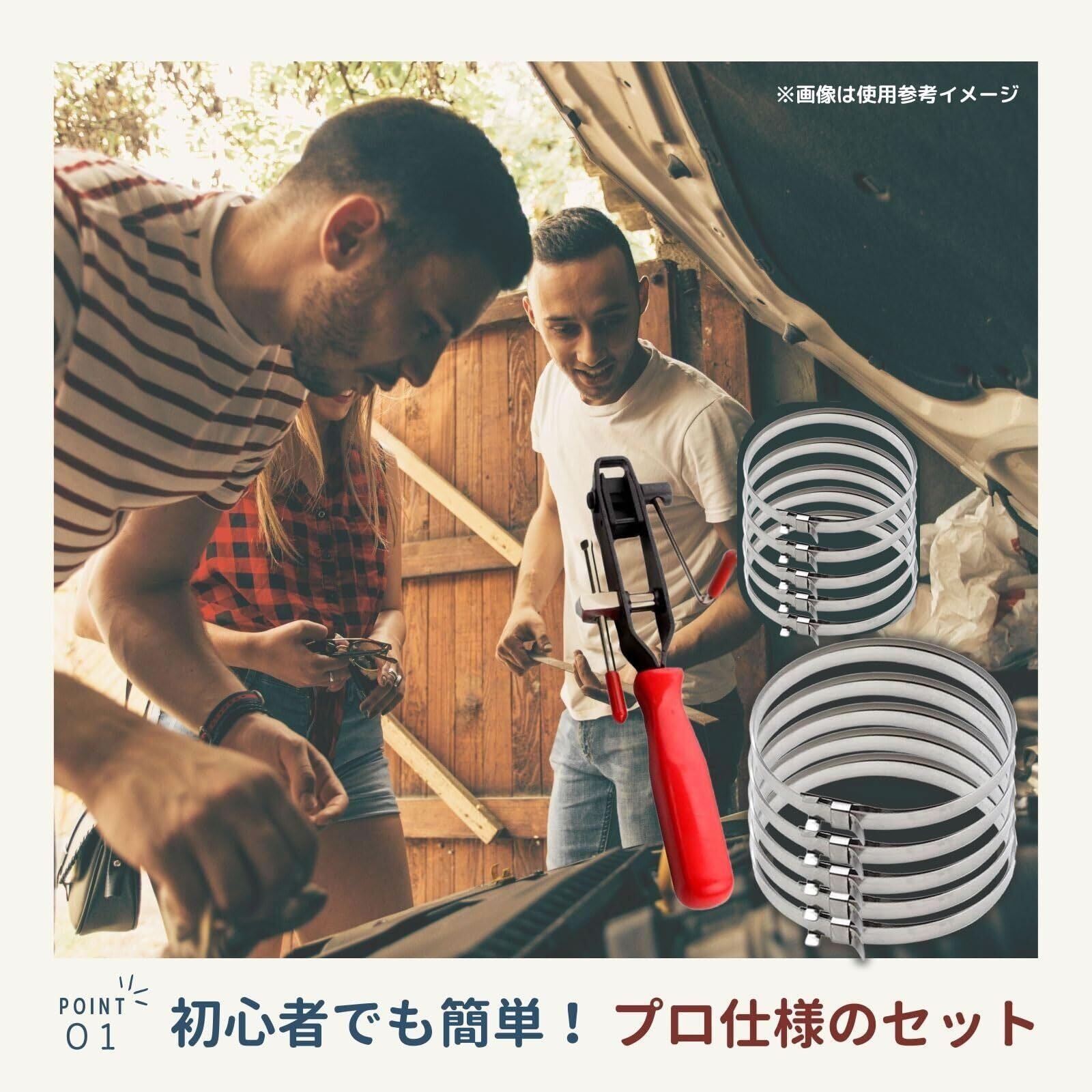 プロも初心者も簡単作業:ドライブシャフトブーツバンド カッターと大小クランプバンド(各5個の10個セット)は、初心者でも簡単にしっかりと取り付けられるドライブシャフトブーツ工具です。バンドの締め付けとカットが簡単に行え、正確な作業が可能です。
