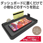 ●ダッシュボードに置くだけの簡単取付けで、小物などのすべりを防止します。 ●しっかりとした剛性の枠付きのトレイタイプでスマホなどの収納物がカーブで飛び出すのを防止します。 ●スリットデザインで駐車券やサービス券などのカード類、硬貨などを立体収納できるので置き忘れしにくいです。 ●耐候性に優れ、ダッシュボードの緩やかな曲面に沿いやすいシリコーン素材を採用しています。 ●トレイ面にはカーボン調のグラファイトブラックカラーを採用し、ホコリなどが目立ちにくくなっています。 ●粘着剤等を使用していないため、ベタ付きや糊残りの心配がありません。 ●汚れても水洗いで、再設置や繰り返しの使用が可能です。