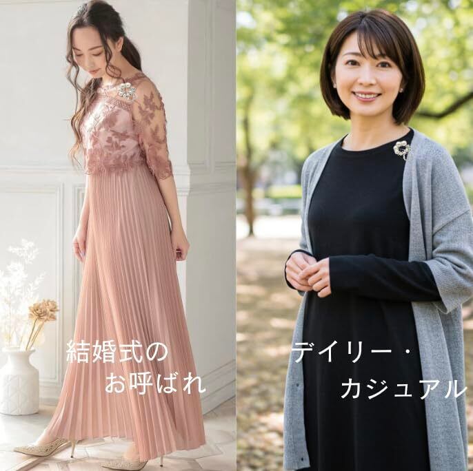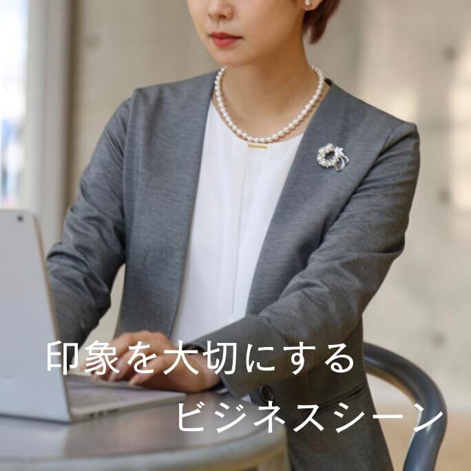 シンプルなネイビーセットアップやスーツ、ブラックフォーマルなどにコサージュの代わりにつけると、上品で洗礼された印象を与えてくれます。