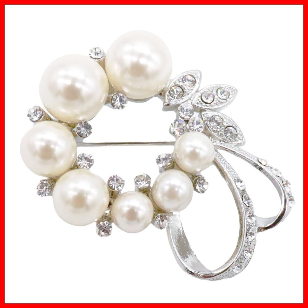 セレモニー、フォーマルシーンに映えるパールとカットガラスのブローチ
