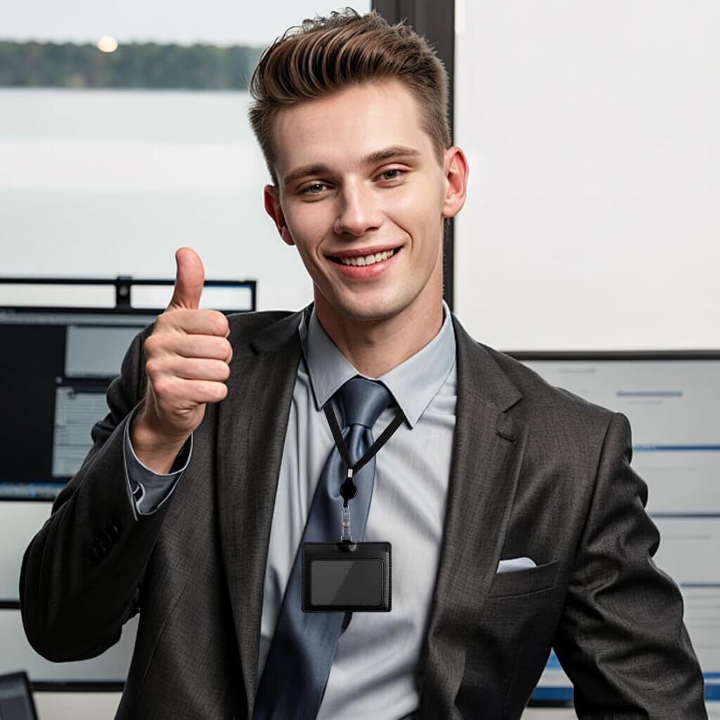 【使いやすさを考えた設計】 : 横型で両面使用可能なこのデザインは、名刺やIDカードを簡単に出し入れできます。スムーズな取り扱いを実現し、仕事の効率もアップ!また、首掛けタイプなので、外出時も身の回りの重要なアイテムをしっかりと持ち歩けます。