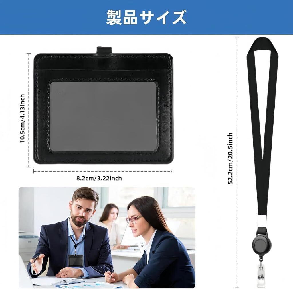 Eon Petchain名刺入れー ネームホルダー 名札ホルダー 社員証 idカードケース PU革 横型 両面用 カードホルダー 首掛け 通勤 通学 男女兼用 (横型 + ブラック) | hananoki