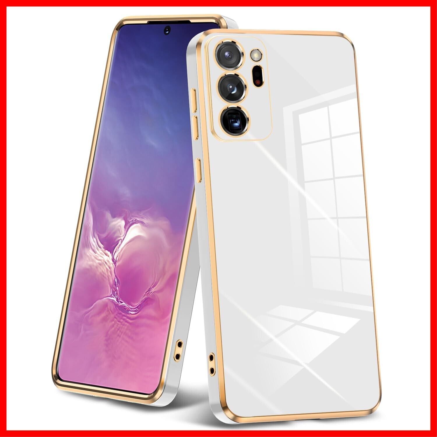 Galaxy Note20 Ultra 用 ケース クリア 耐衝撃 TPU ケース レンズ保護 ソフトケース 透明 メッキ加工 ワイヤレス充電 ギャラクシーNote20 Ultra 5G 用 カバー ラップホール付き 薄型 軽量 メッキ枠 ホワイト/ゴールド JP2-127 | hananoki