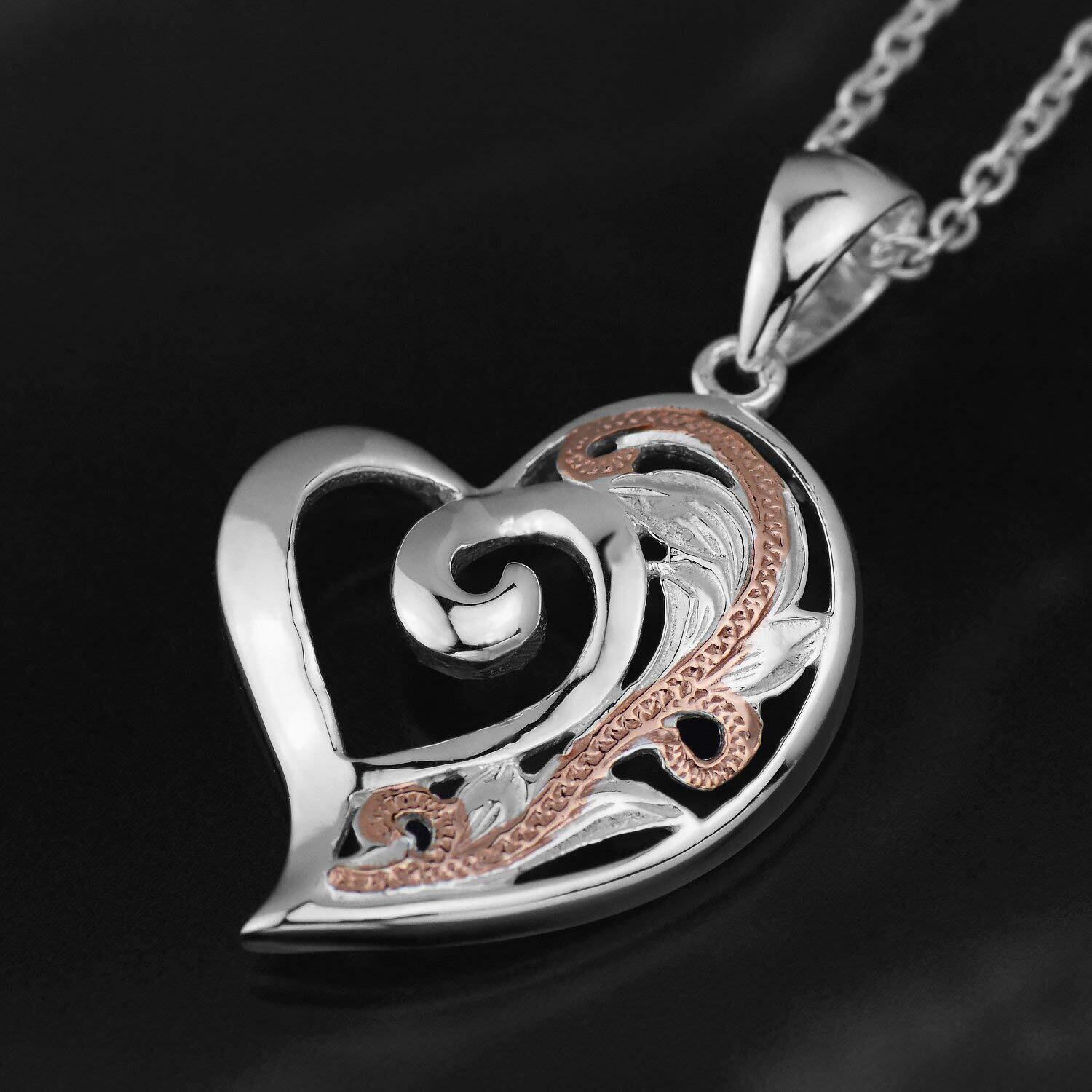 ● 商品名:[レイラニ] ハワイアンジュエリー マイレリーフ スクロール(波) 透かし彫り ハート ペンダント ネックレス ピンクゴールドコーティング