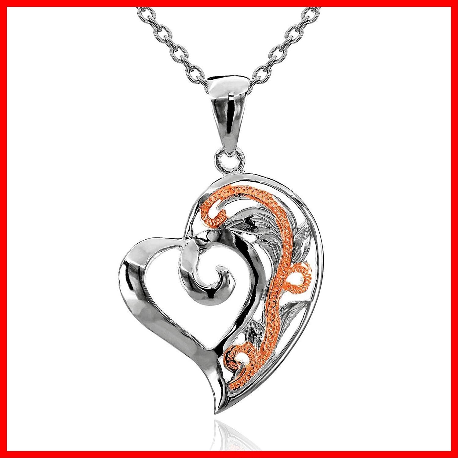 【華やかさを引き立てるハワイアンジュエリー!】 : 「[レイラニ] ハワイアンジュエリー」は、心をつかむデザインのマイレリーフと透かし彫りのハートペンダントが特徴です。このネックレスは、どんなシーンでも華やかさを演出し、あなたのスタイルを一層引き立てます!