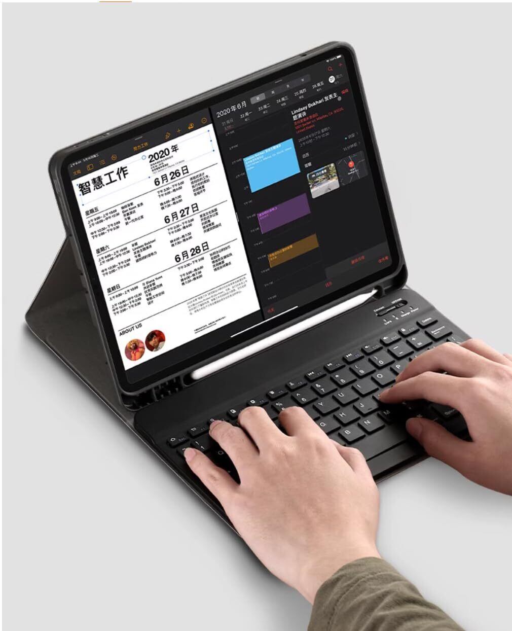 【快適なタイピングをサポート!】 : 分離式のキーボードデザインで、自分に合った位置に配置でき、さらに磁気でしっかりと固定されます。薄型設計で軽量のため、持ち運びにも便利。外出先でも快適に作業ができます。