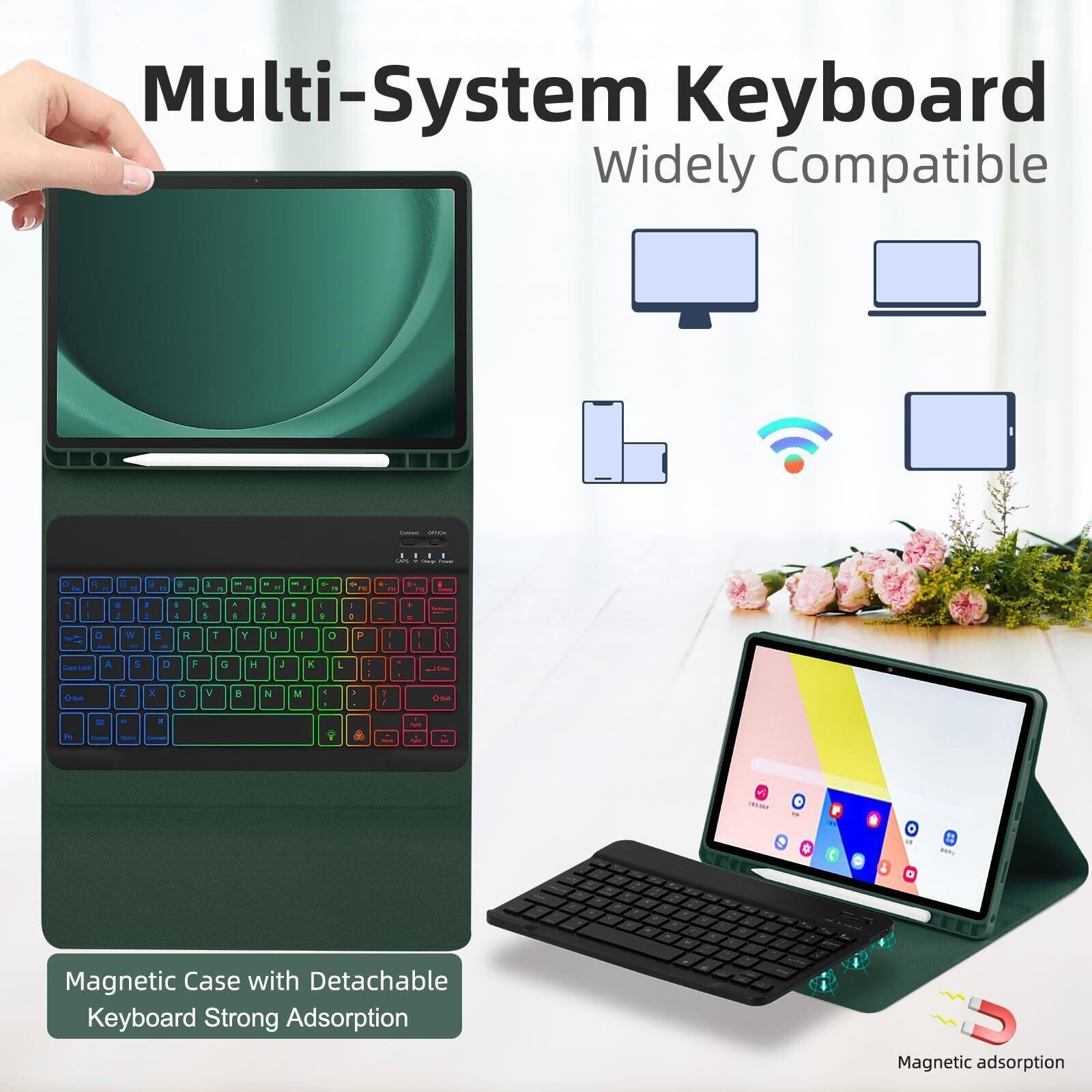 キーボードケース ワイヤレスマウス付き RGBバックライト搭載 磁気 分離式 タッチペン収納対応 軽量 薄型 7カラーバックライト