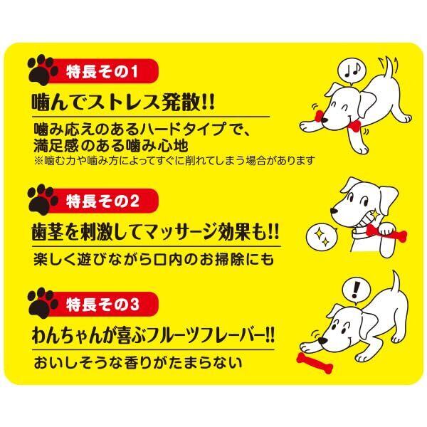 香りのデンタルトーイ骨型&突起の特殊デンタル形状。噛むことが大好きなワンちゃん大満足。適度な固さのセミハードタイプで、満足感のある噛み心地。わんちゃんが喜ぶグレープフレーバー。