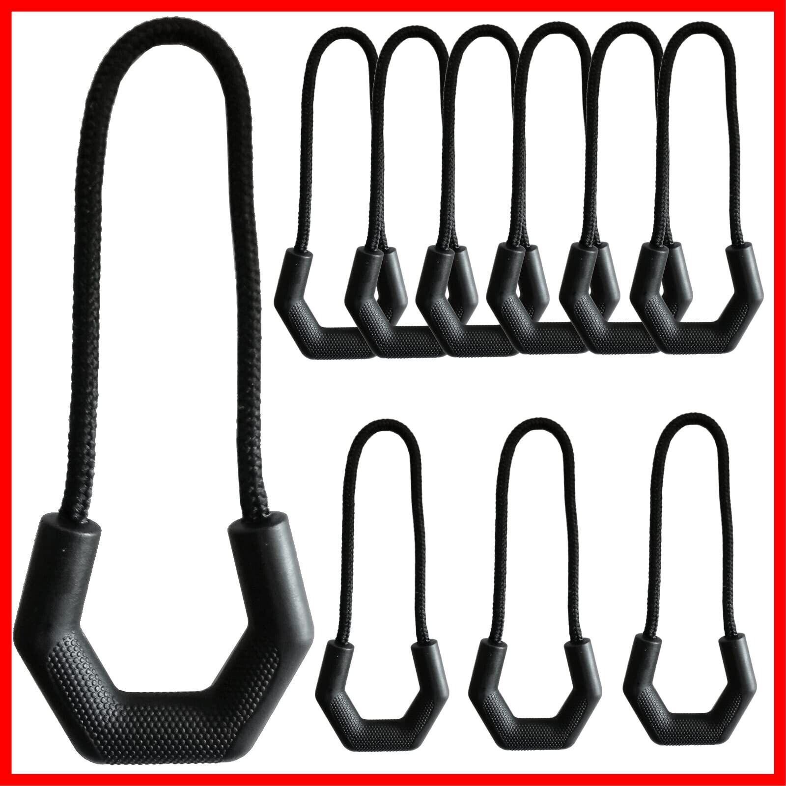 DY.2ten ジッパープル ジッパータブ 10個セット ファスナー 引き手 交換用ジッパープル 引きやすい 大きめザック バックパック/衣類/テント/寝袋用 取付簡単 実用的ファスナーパーツ ブラック