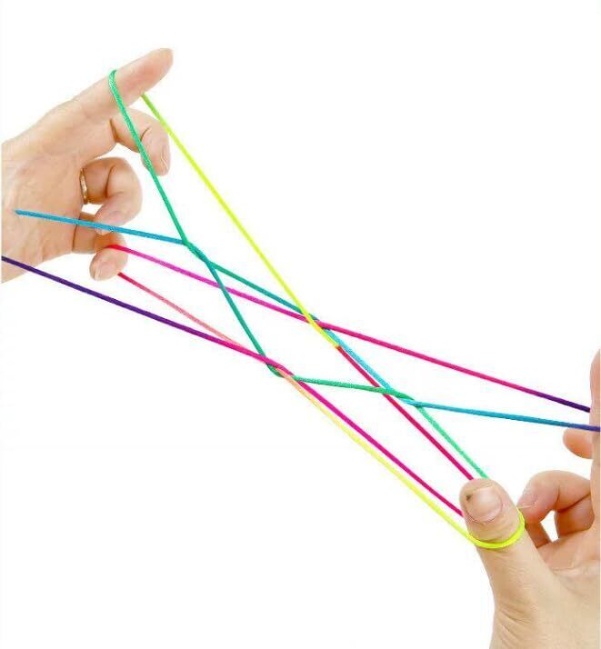 【商品仕様】サイズ:長さ160cm、厚さ3mm。10本セット。ナイロン製、結び目がないあやとりです。