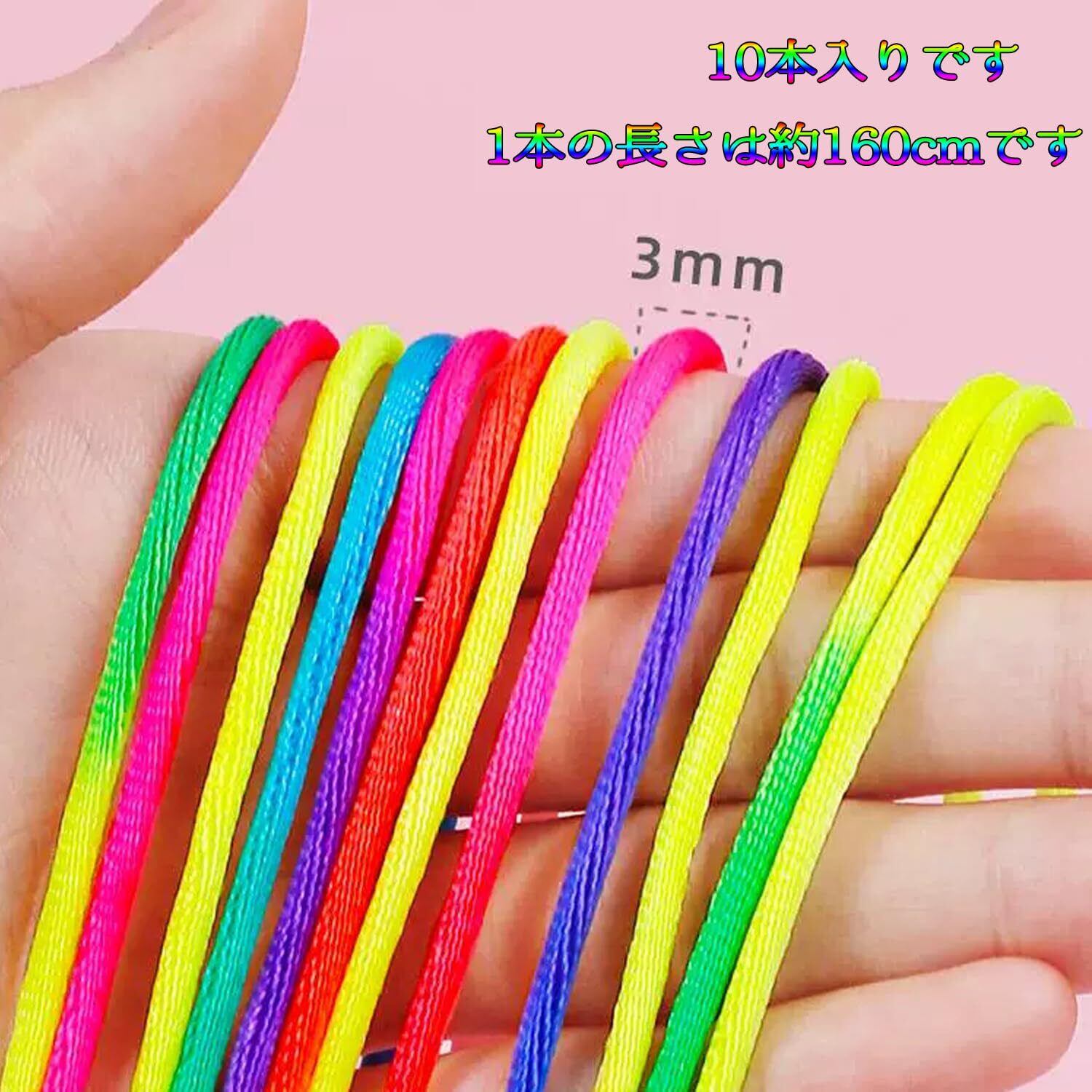 ● 特徴:鮮やかなレインボーカラー、結び目のない高品質ナイロン紐が10本セットで、DIYや手芸に最適なアイテム