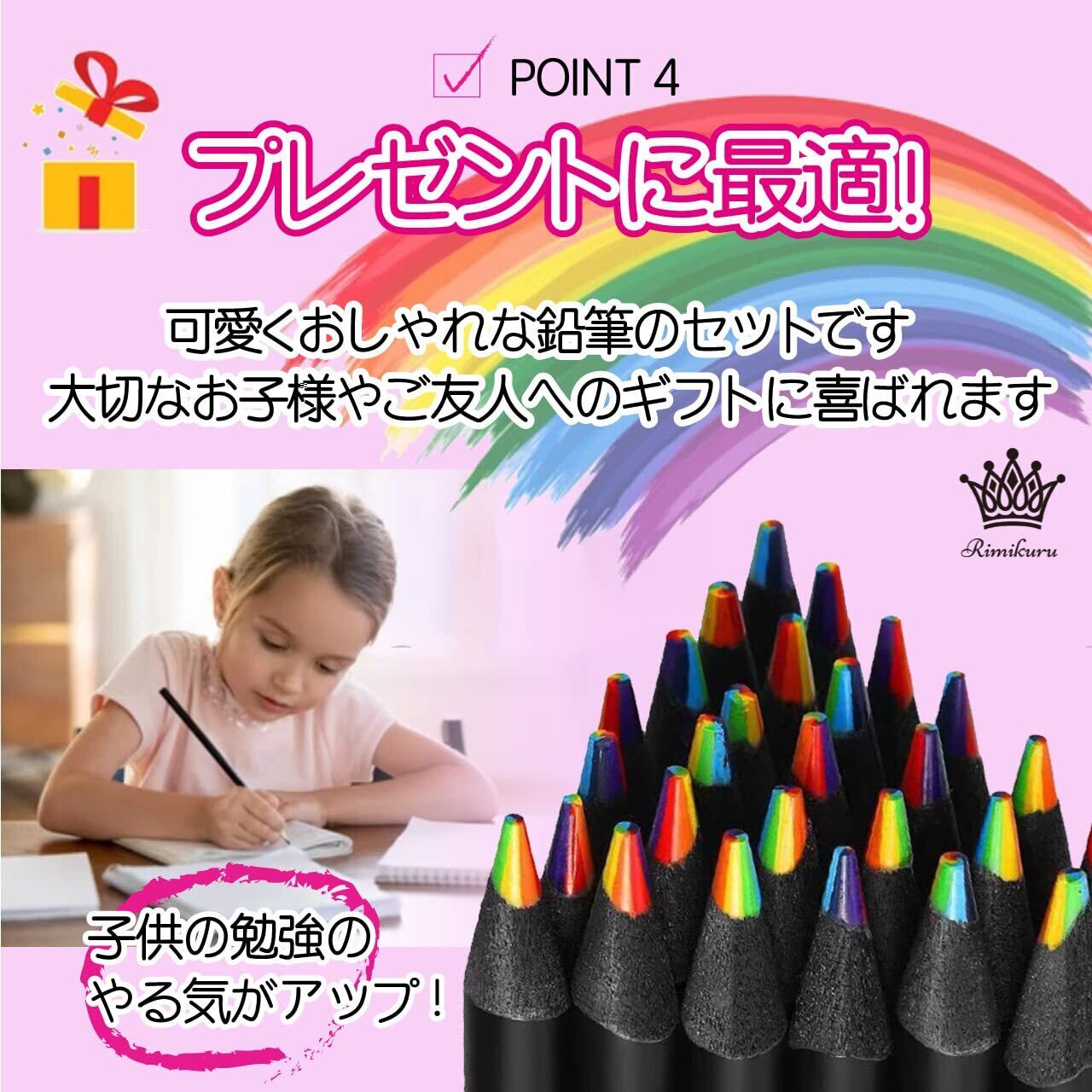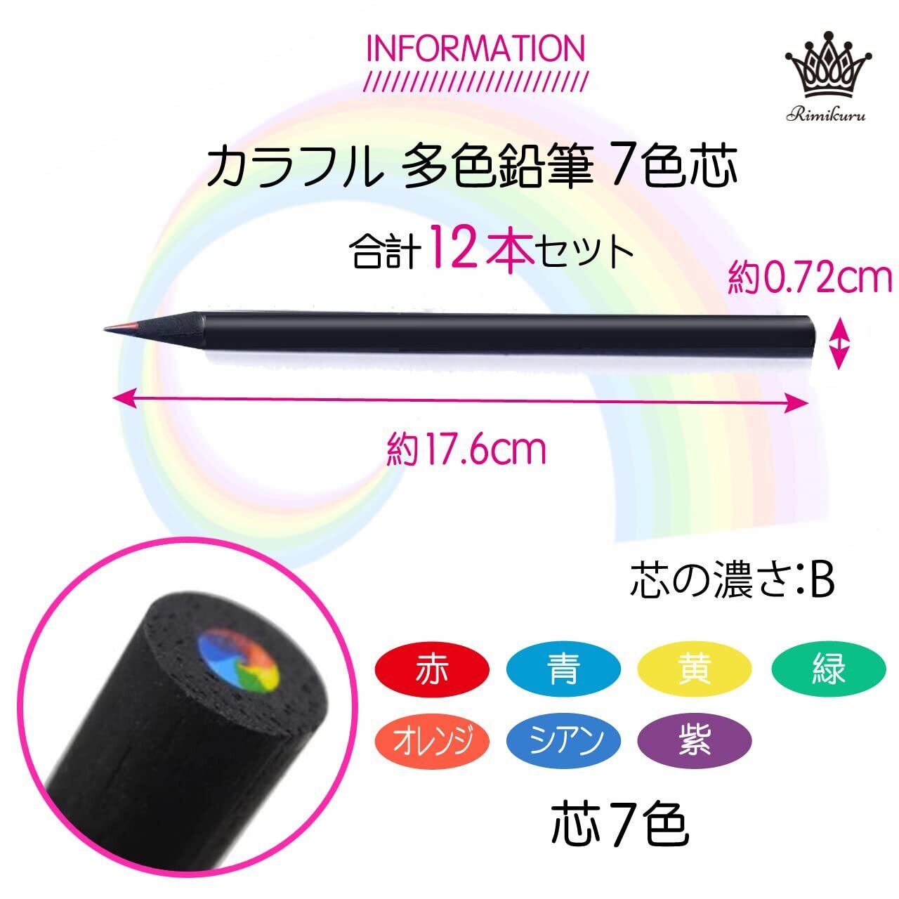 Rimikuru カラフル 色鉛筆 セット 7色芯 B 多色 鉛筆 レインボー えんぴつ 7色 虹色 虹 かわいい (12本セット)