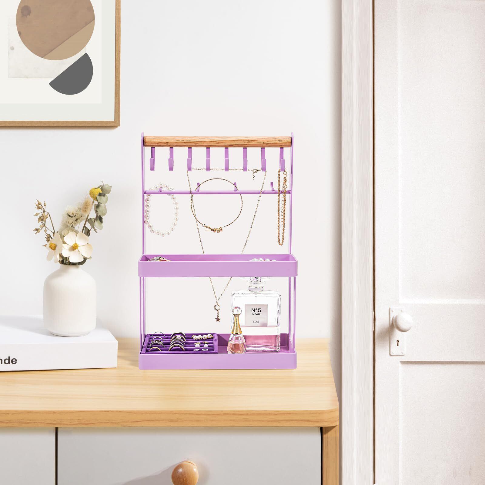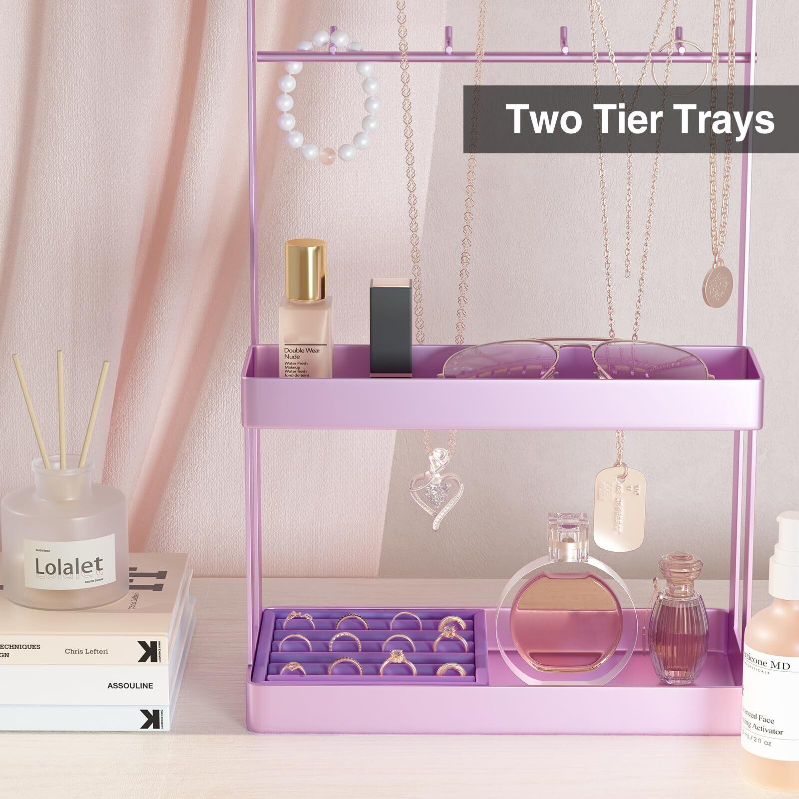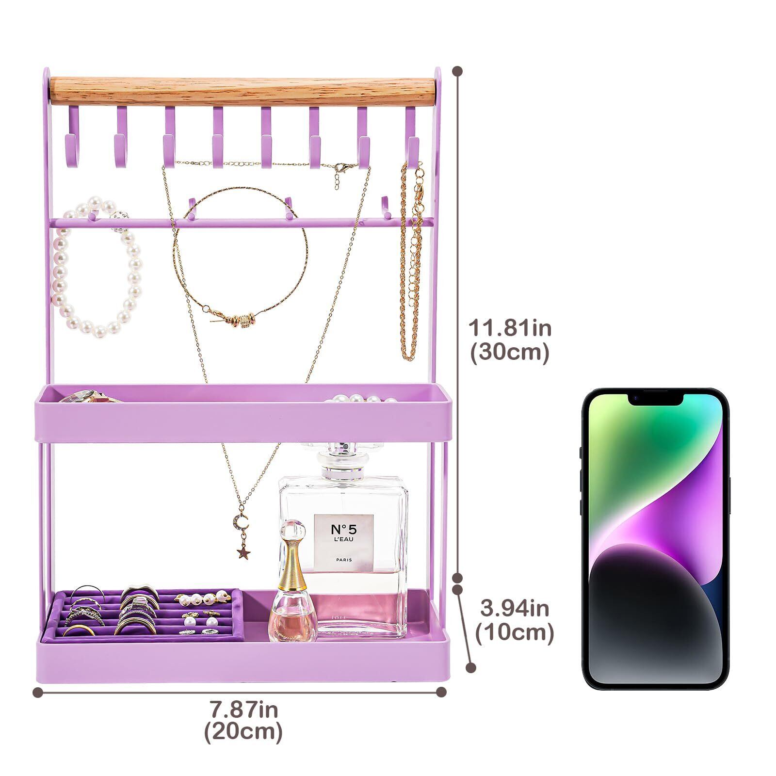 Lolalet ジュエリースタンド アクセサリー収納 指輪ケース付き ネックレス・ブレスレット掛け イアリング・ピアススタンド 鍵・腕時計・香水・サングラス収納トレイ -パープル