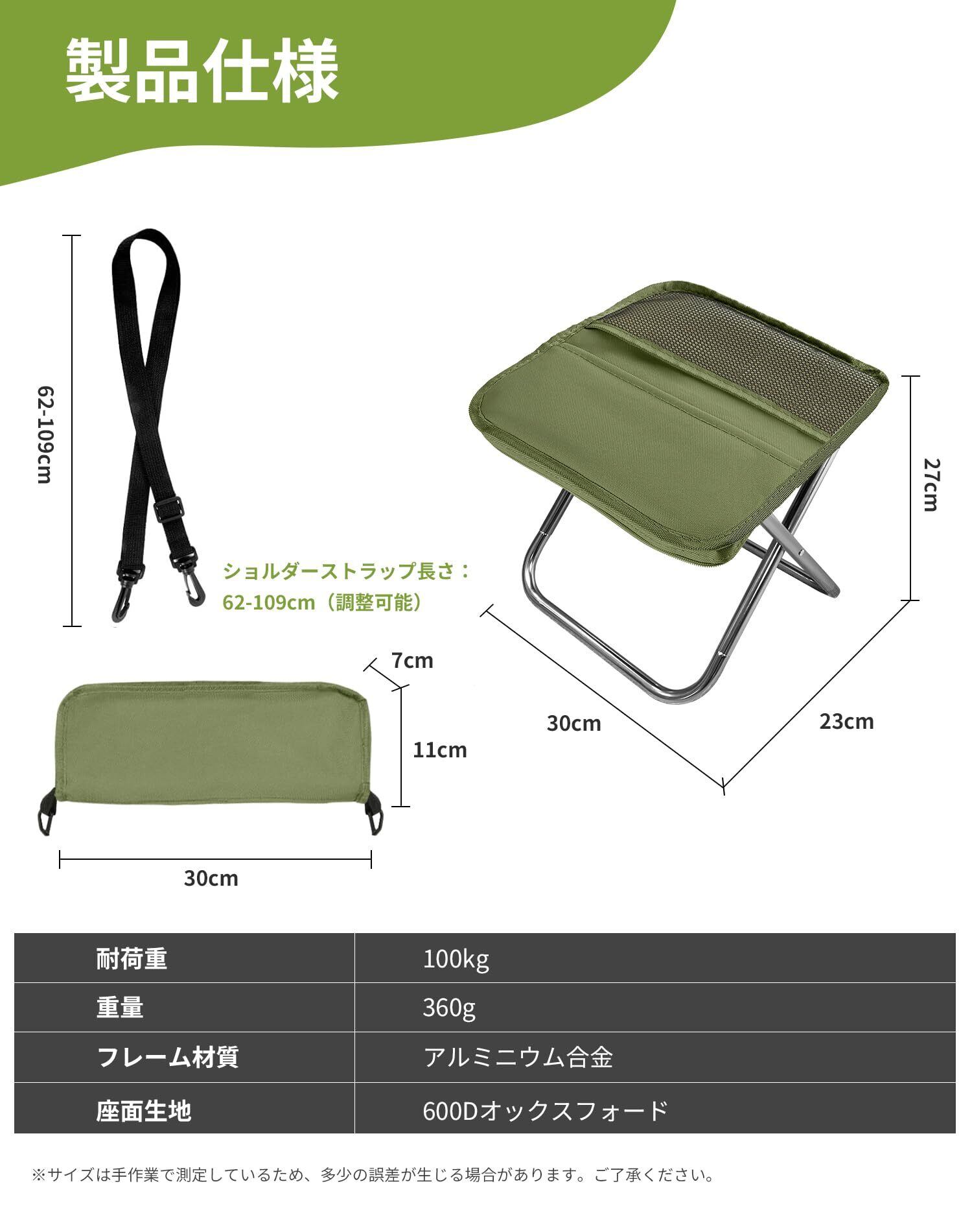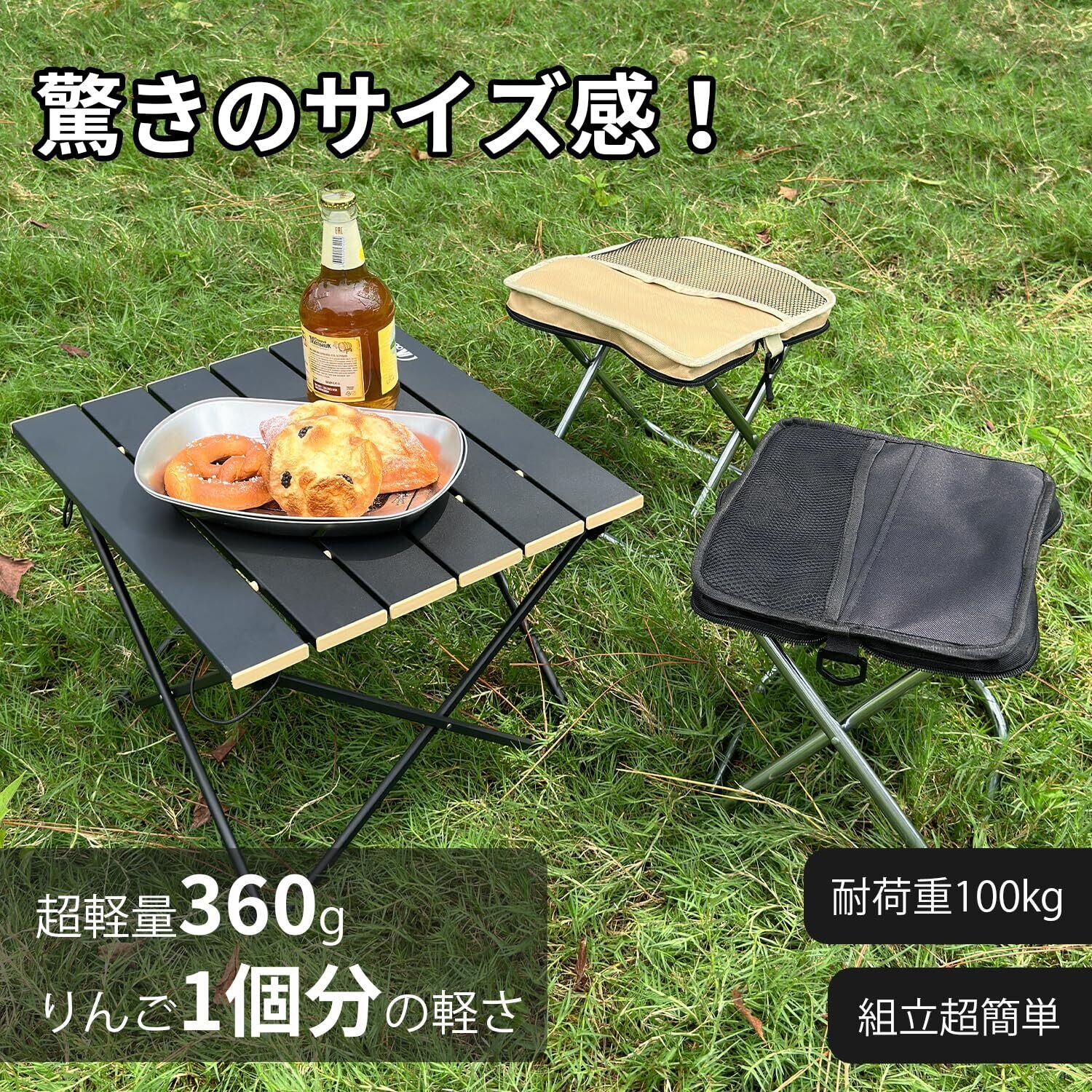 【 驚きの軽さ!わずか360g 】 わずか360g、リンゴ1個とほぼ同じ重さの超軽量アウトドアチェア!折り畳み時は30×11×7cmとペンケースほどのサイズに。さらに長さ調整可能なショルダーストラップ付きで、持ち運びも快適
