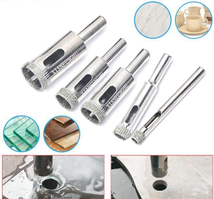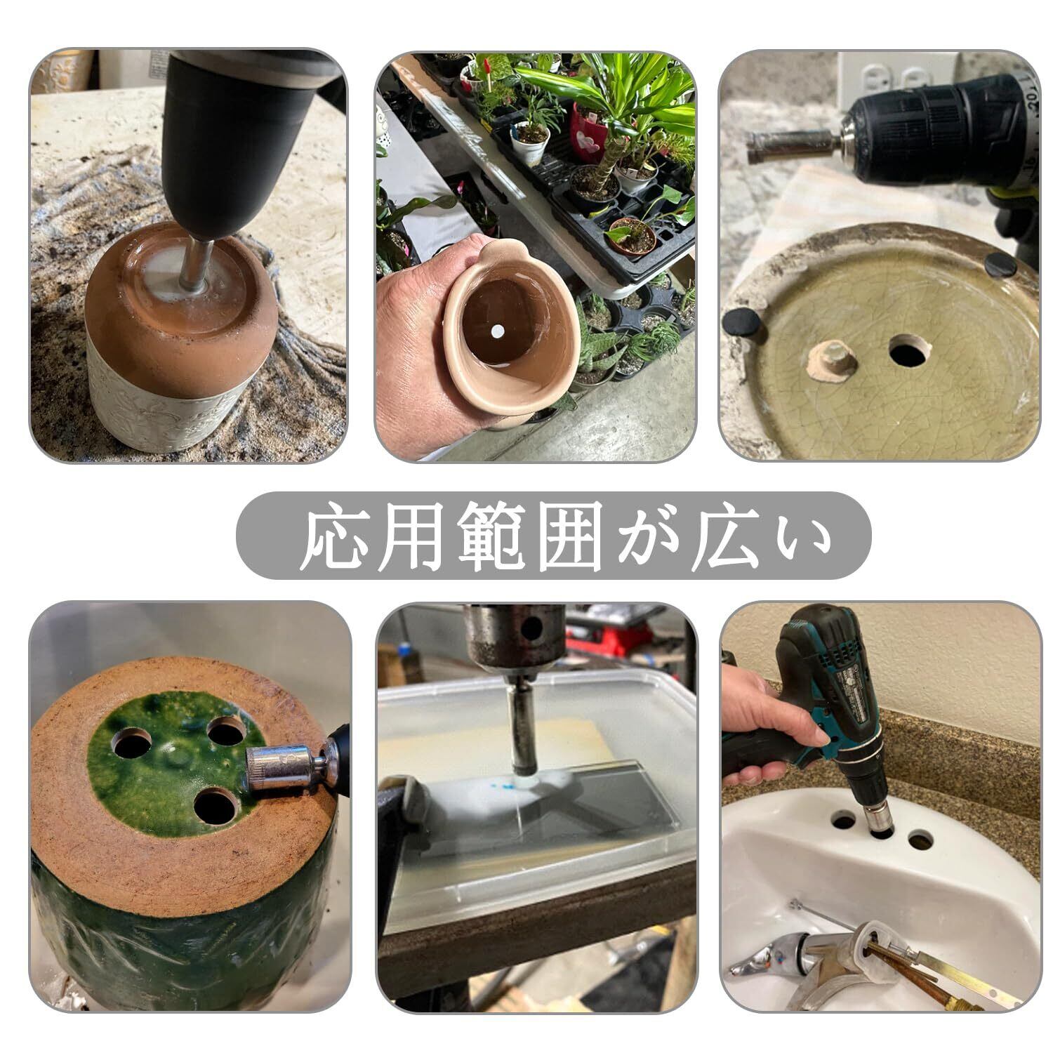 電気ドリル、充電式ドライバー 、ボール盤にとりつけて、ガラス、タイルはもちろん、大理石、花崗岩などの穴開けにも対応可能です。