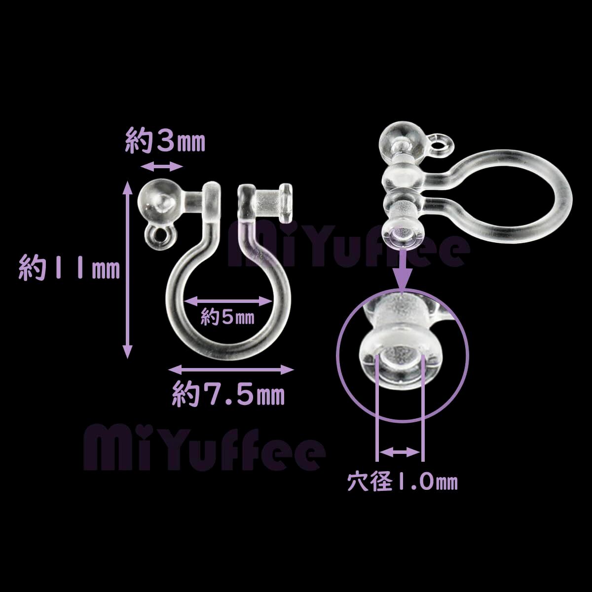 素材:樹脂 色:クリア(透明) 数量:100個 サイズ:約10mm(穴の直径約1mm)