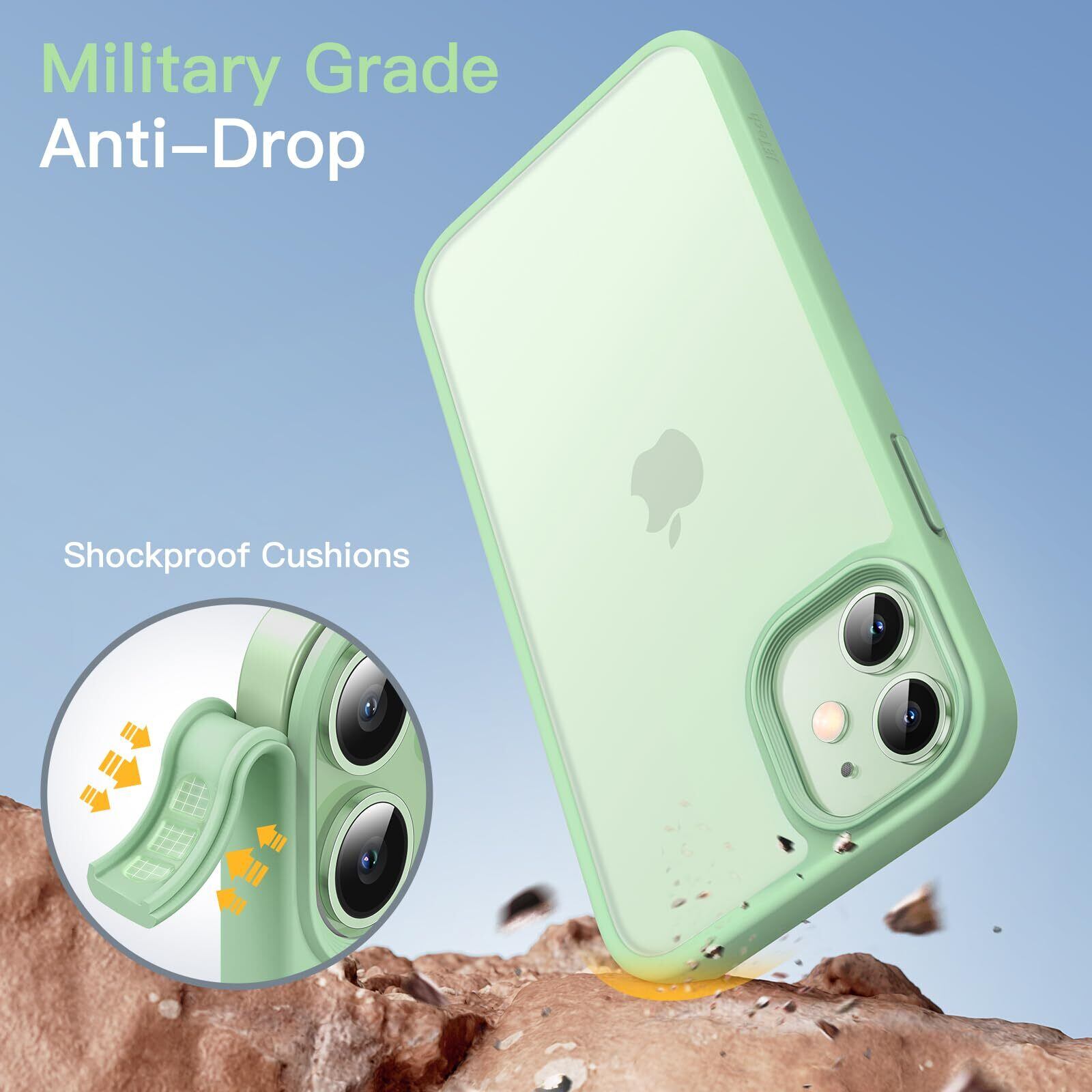 JETech マットケース iPhone 12 Mini 5.4インチ 耐衝撃性ミリタリーグレードの落下防止 つや消しの半透明の背面電話カバー 指紋防止 (グリーン)