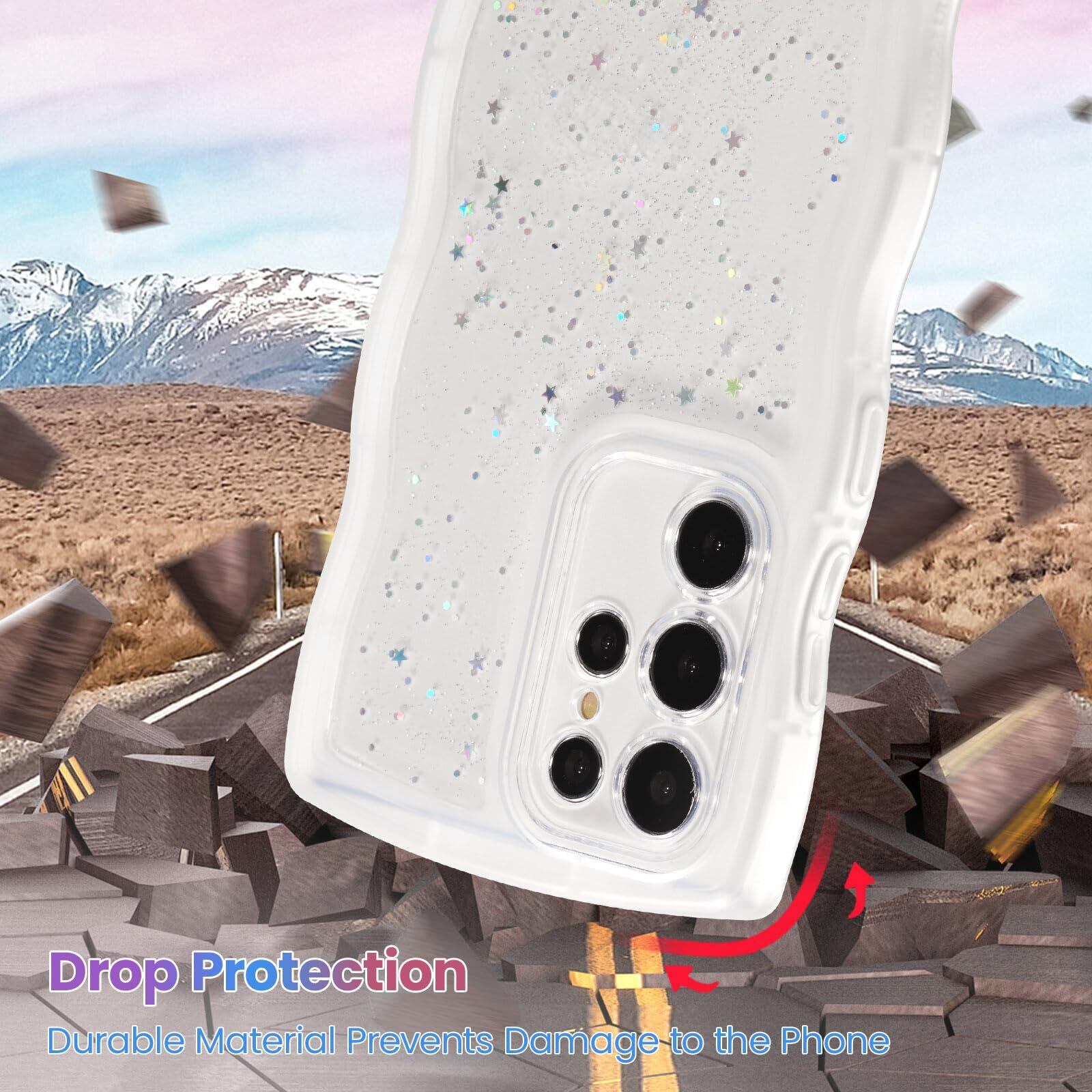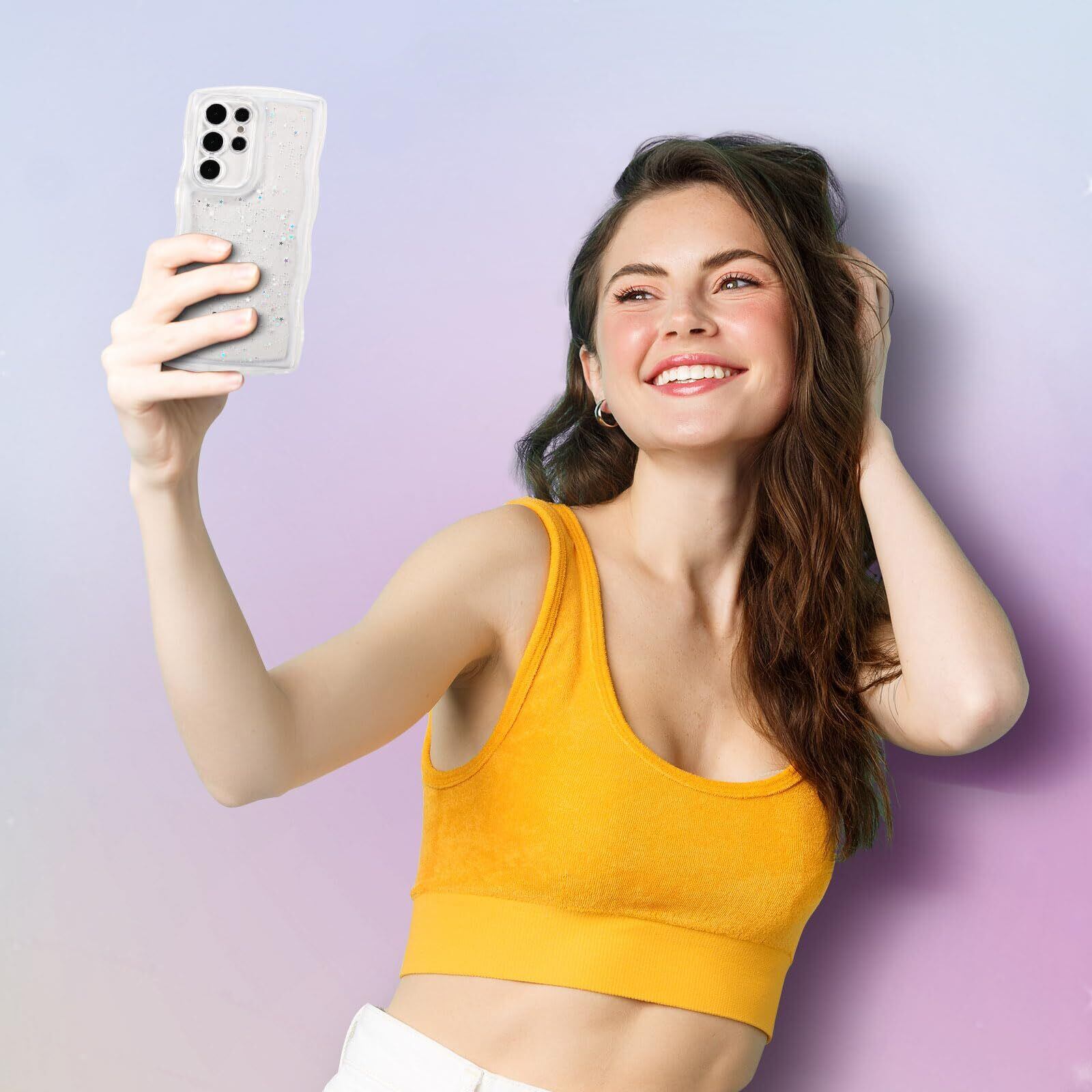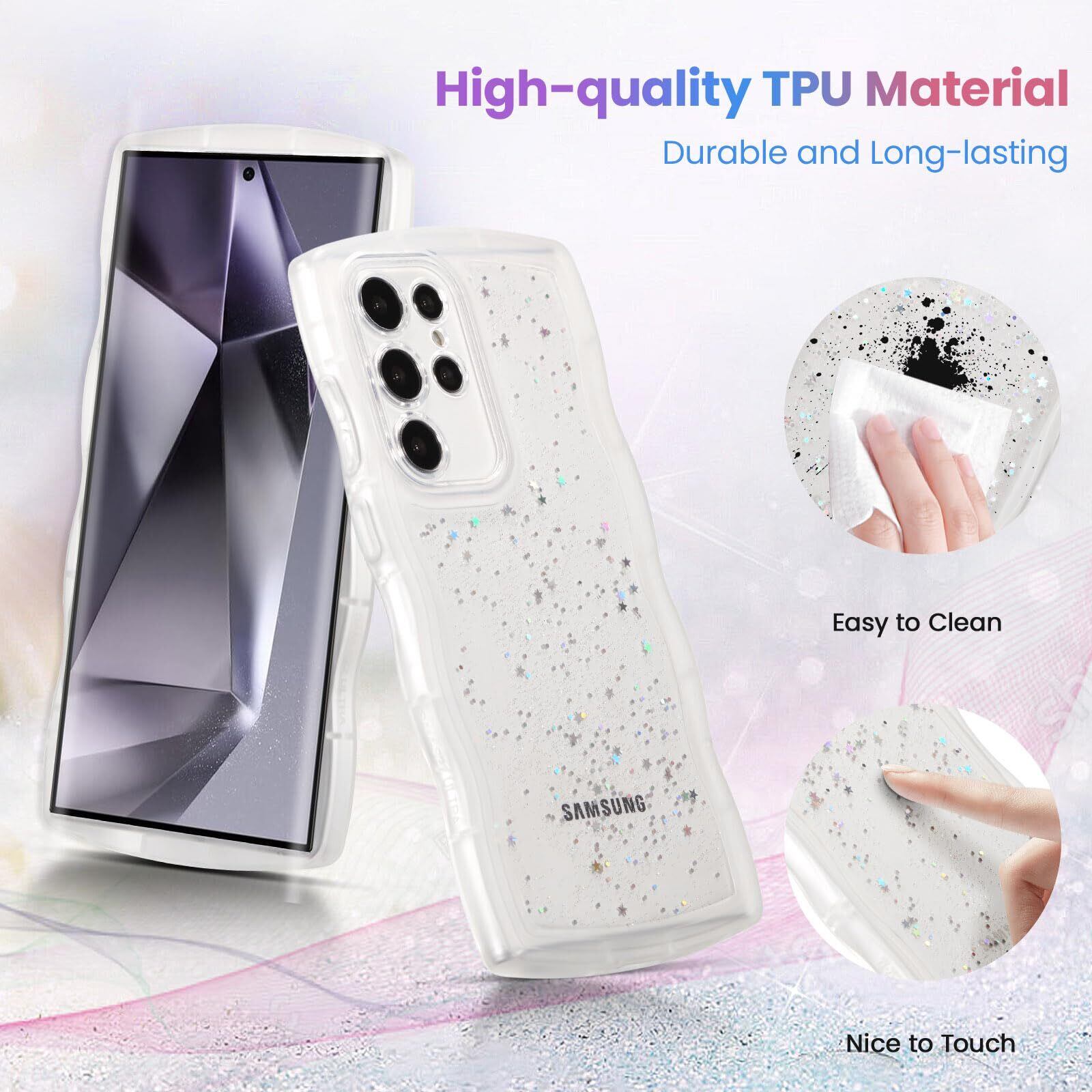 QLTYPRI Galaxy S24 Ultra ケース クリア TPU カバー ウェーブ おしゃれ 韓国 可愛い ウェーブ グリッター 透明 薄型 軽量 耐衝撃 滑り止め (SC-52E / SCG26) スマホケース ワイヤレス充電対応 ストラップホール付き ギャラクシーS24 Ultra ケース 6.8インチ 対応 - クリア