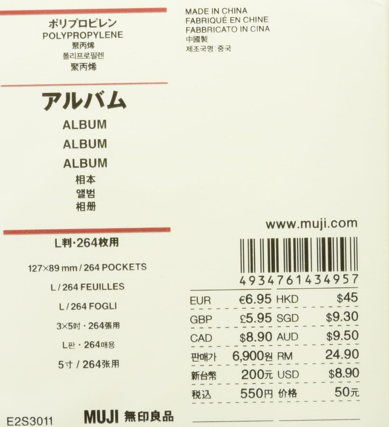 無印良品 ポリプロピレンアルバム L判・264枚用 61434957