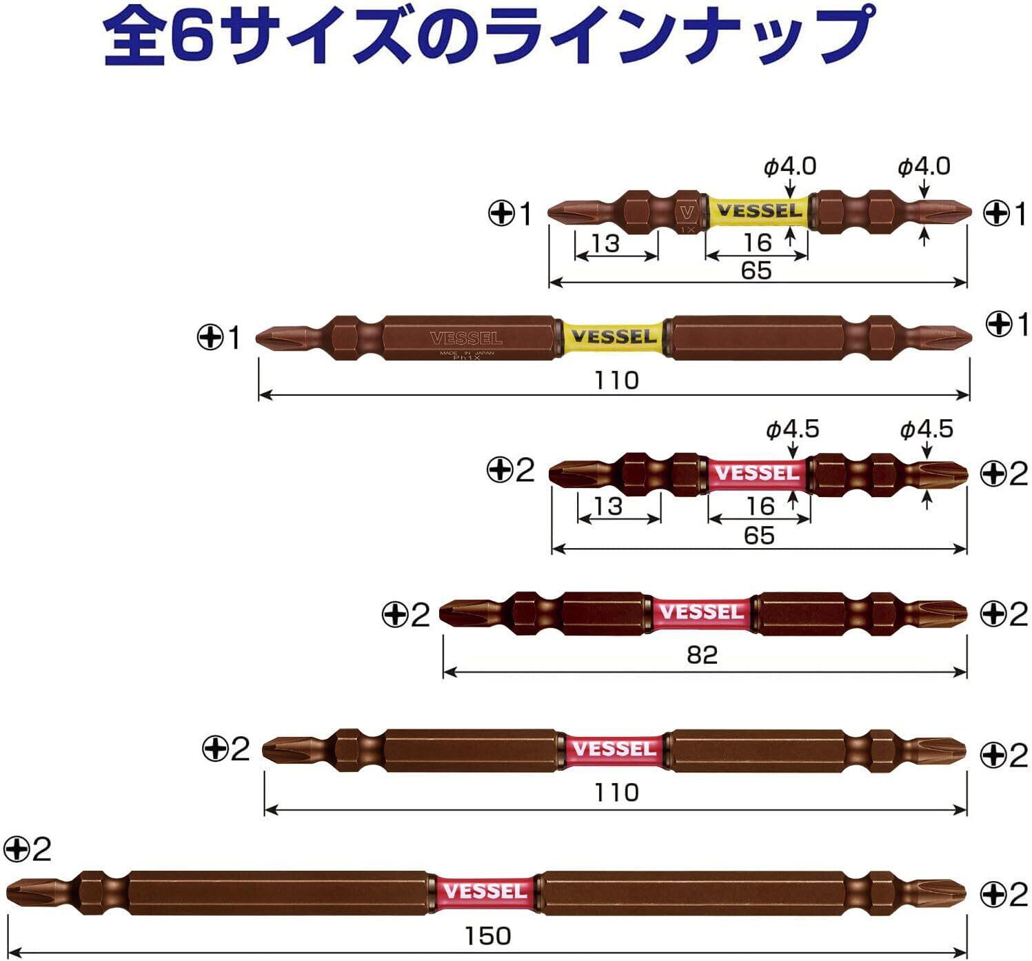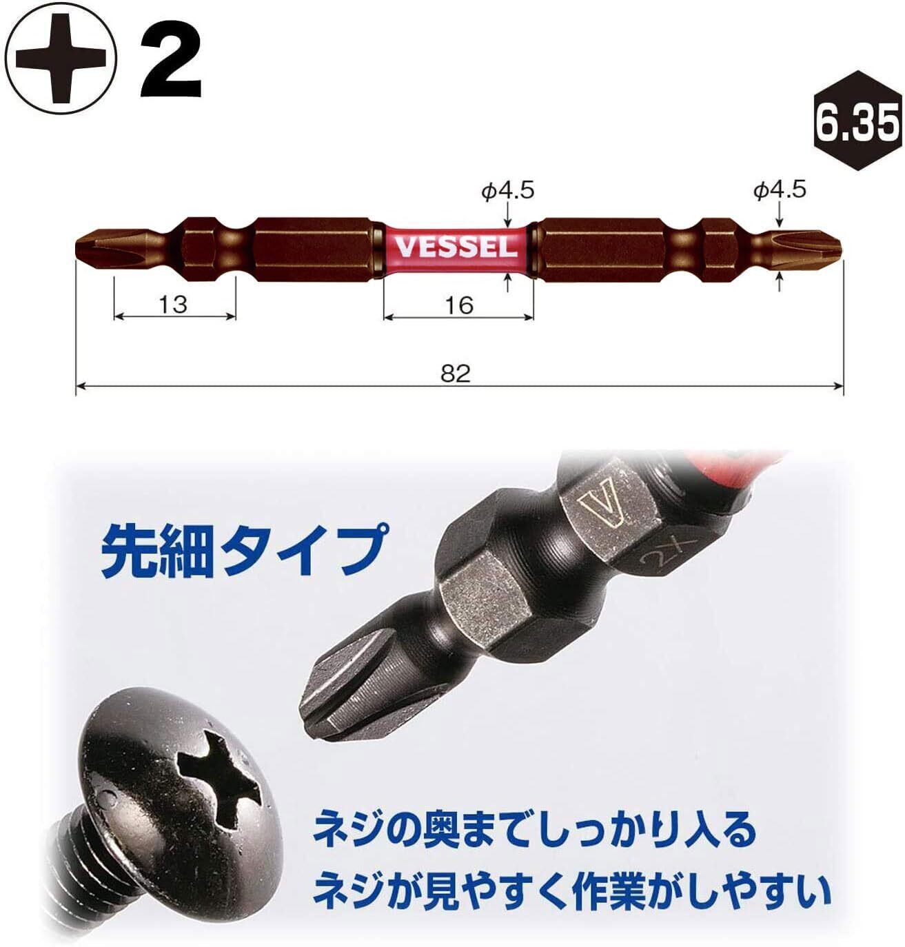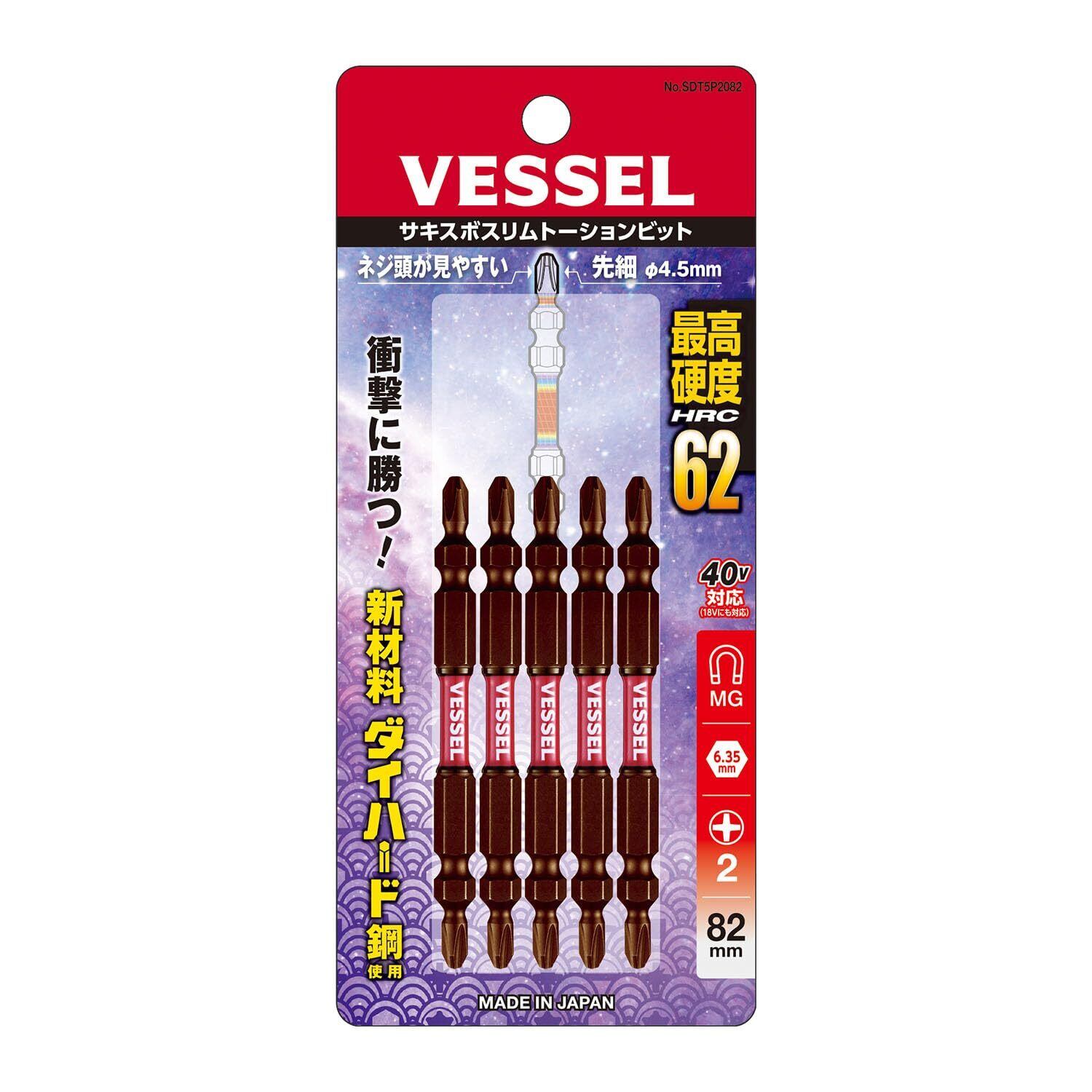 ベッセル(VESSEL) 40V対応 両頭ビット サキスボ スリム トーション +2×φ4.5×82mm 5本 SDT5P2082