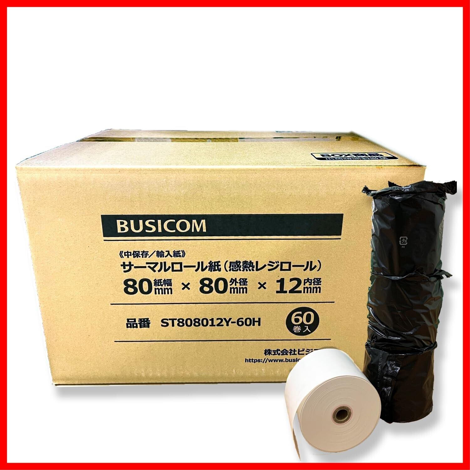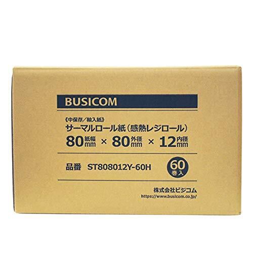 ビジコム純正 輸入紙 国内加工 感熱レジロール紙(60巻) 80mm幅×外径80φ×内径12mm 芯あり 中保存 ST808012Y-60H
