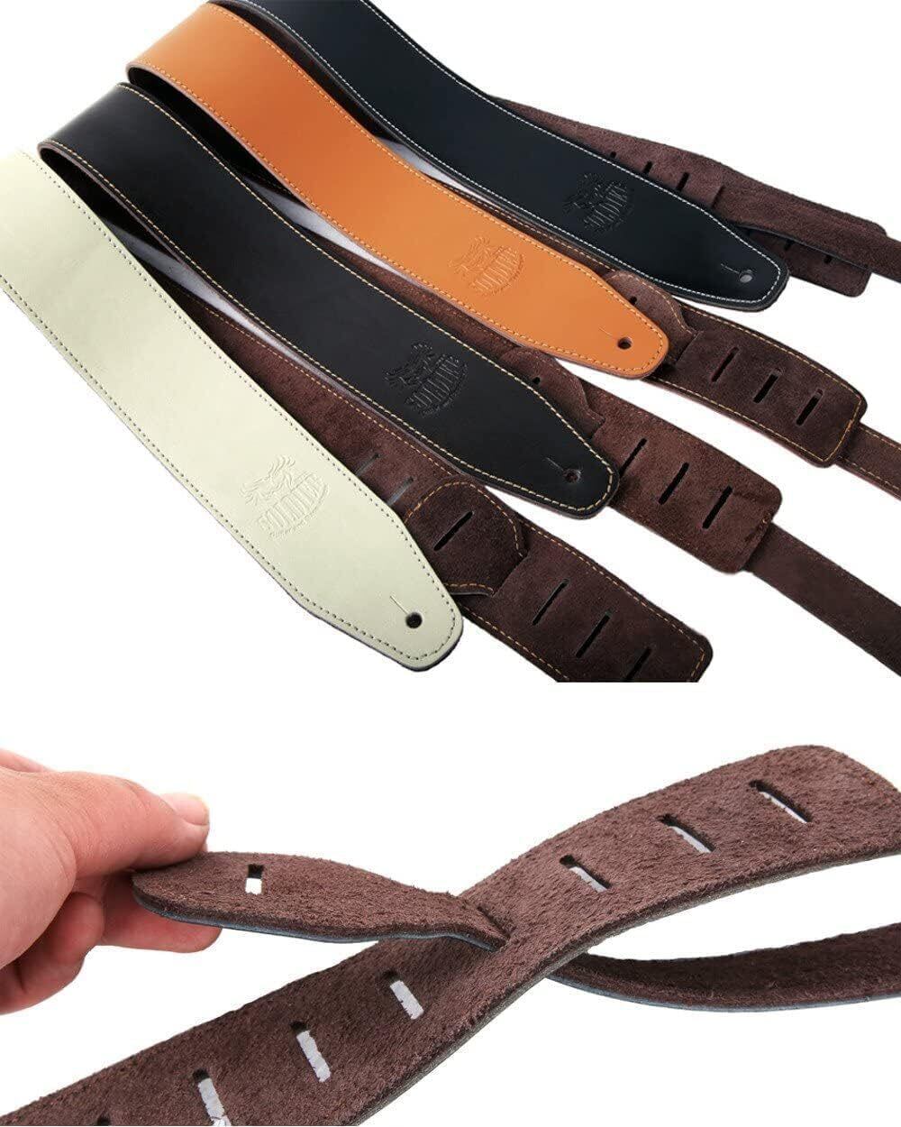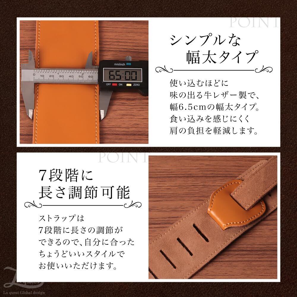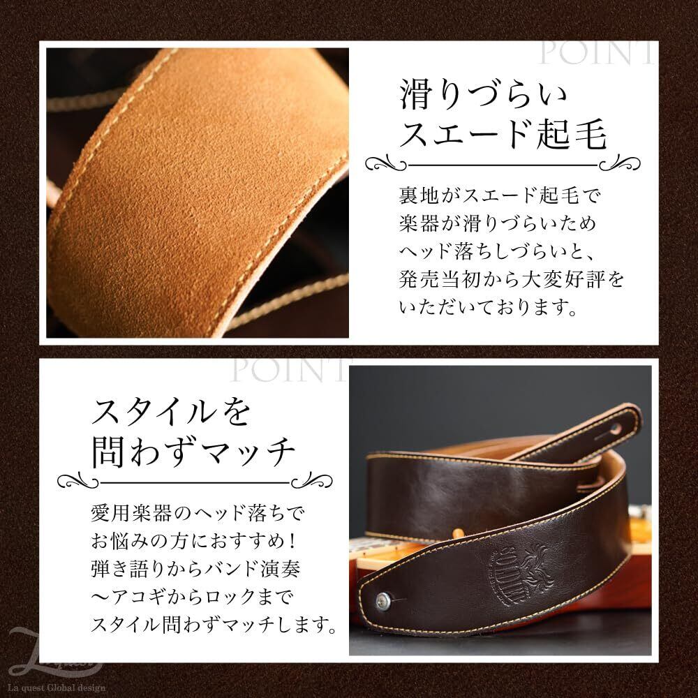 [Laquest] レザー ギターストラップ 牛革 滑らない【ヘッド落ち対策】 アコースティック エレキ ベース 本革ストラップ (ブラック)