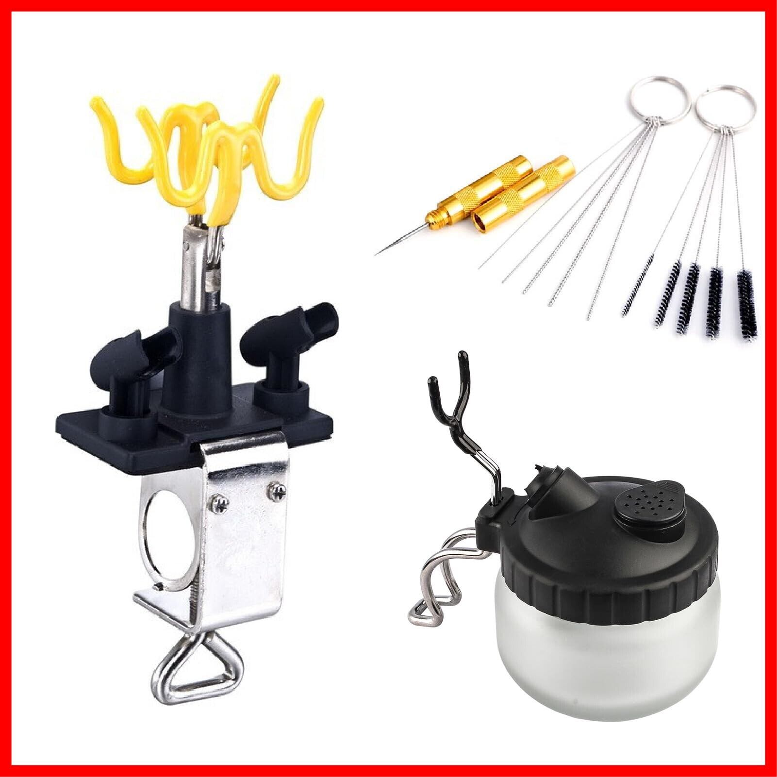 便利なエアブラシスタンドと洗浄ポットのセットで、作業中の手間を省きます。高品質なステンレス製のホルダーを使用しており、耐久性があります。