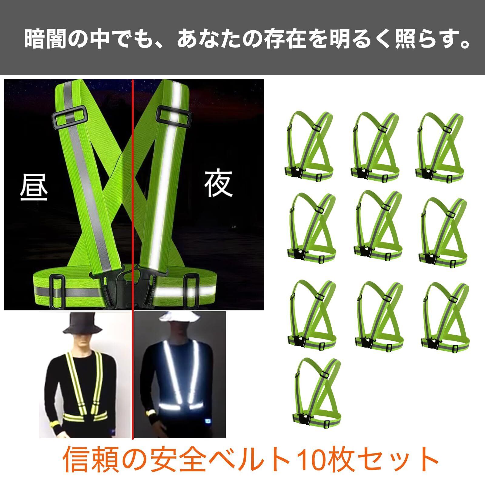 【周りの安全性を確保】大規模なイベントやグループ活動に最適な、反射ベスト10枚セット。暗闇の中でも参加者をしっかりと目立たせ、安全確保に貢献します。チームや仲間とのアクティビティをより安全かつ楽しくするためのサポートアイテム。