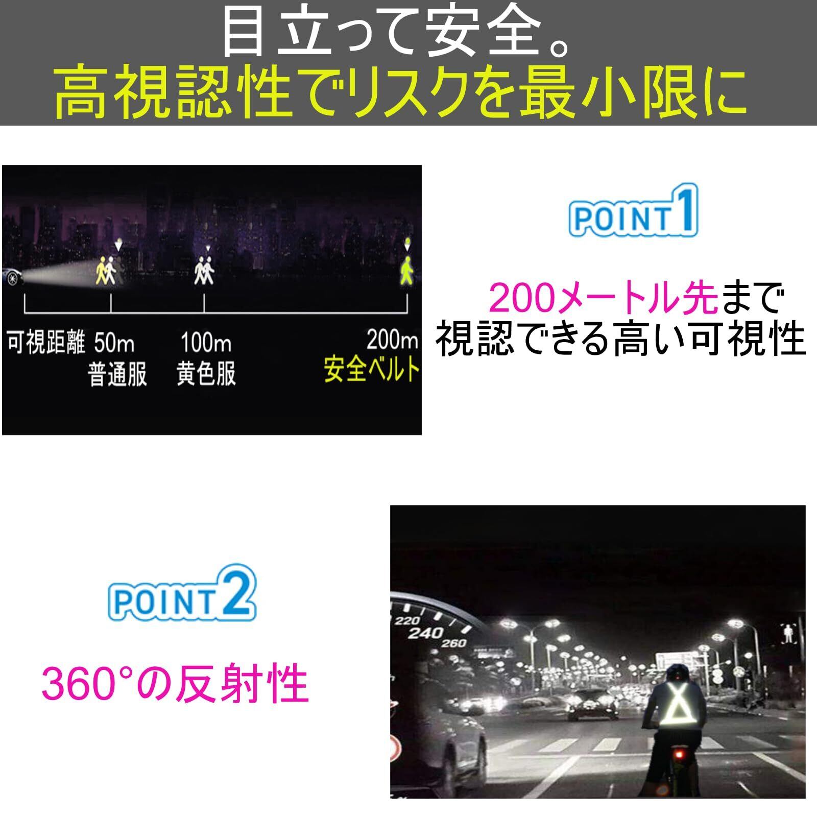 "【あなたの存在を明るく照らす】高視認性の反射ベストで、夜間活動時のリスクを大幅に軽減。最大200メートル先までの視認性と360°の全方位反射設計で、どの角度からも確実に見える安心設計。目立って、より安全に活動を楽しむための選択。 "