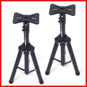 耐久性に優れた構造 太さ3.5㎝の鉄スチール材パイプ仕様の強化構造と黒色仕上げを特徴としており、耐久性と信頼性を兼ね備えています。 【商品仕様】素材:ABS樹脂(スタンドトレイ)、鉄スチール材(3.5㎝パイプ)、荷重:50㎏、重量:1.6㎏、高さ:4段階調整可能(約60-120㎝)、脚広がり幅:約25-50㎝、安全ソリッドピン付き、滑り止めフットカバー付き【セット内容】折りたたみ式2本組