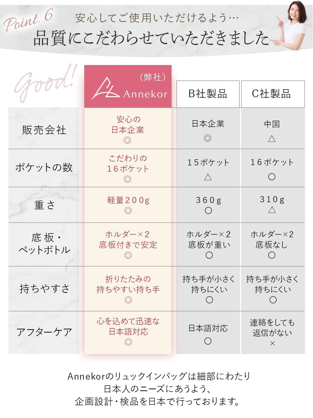 【安心の日本企業対応|類似品にご注意ください】 見た目が似ていても品質や対応は大きく異なります。Annekorは日本企業として、品質管理・アフターサポートも充実。万が一の際も、日本人スタッフが丁寧かつ迅速に対応いたします。
