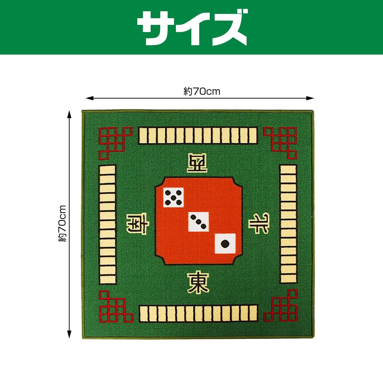 【麻雀 マット 仕様】 ◎サイズ:70×70×0.5cm ◎重さ:約570グラム ◎材質:ポリエステル(表)、ゴム(裏)
