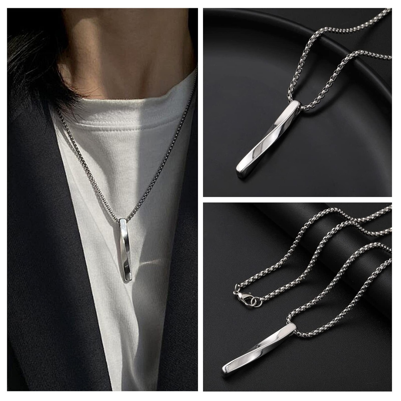 ネックレス メンズ 人気 ペンダント ステンレス ネックレス シンプル ツイスト スティック ペンダント シルバー シンプル