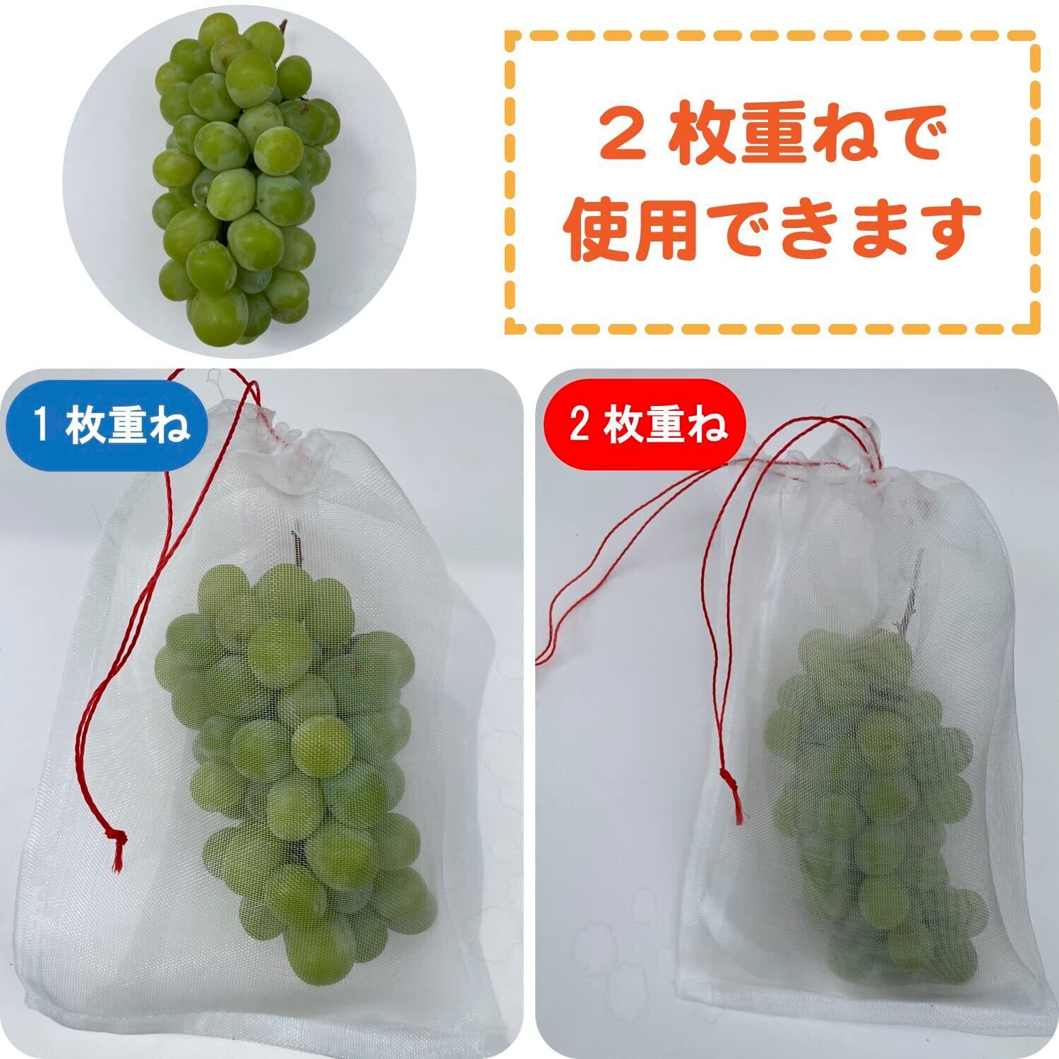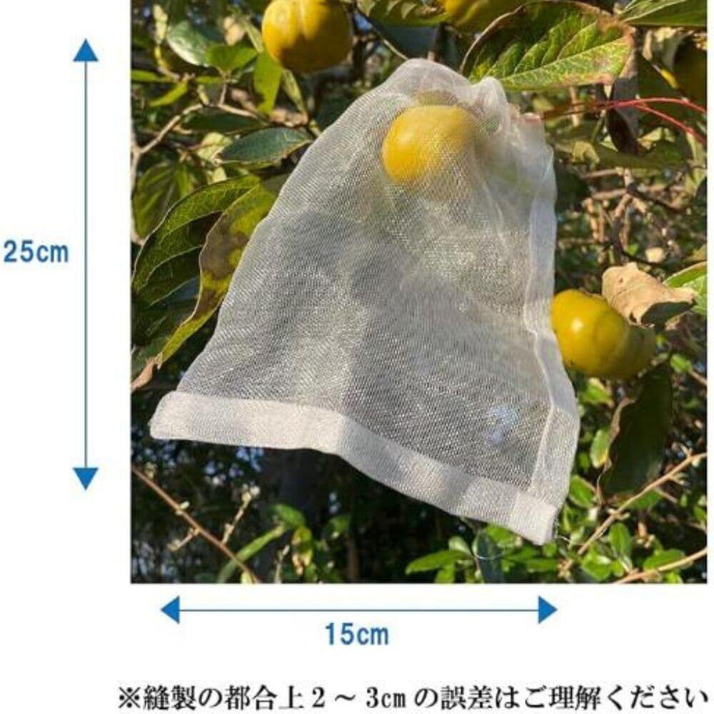 果物 果実 防虫 巾着 袋 保護 ネット 植物 フルーツ 鳥よけ 網 メッシュ 光 通過 農業 園芸 (25cm×15cm 50 枚セット)