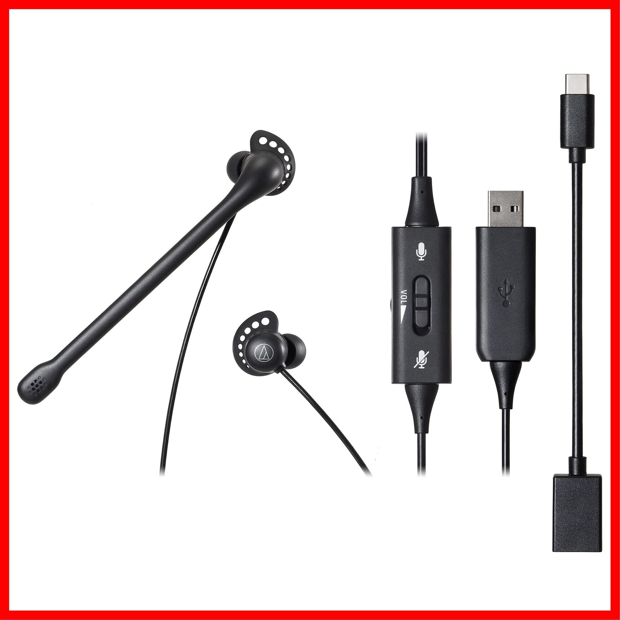 オーディオテクニカ ATH-202USB ヘッドセット 有線 USB Type-A Type-C ノイズキャンセリング マイク付き イヤホン 手元コントローラー 抗菌・消臭加工 web会議 テレワーク windows mac Chrome
