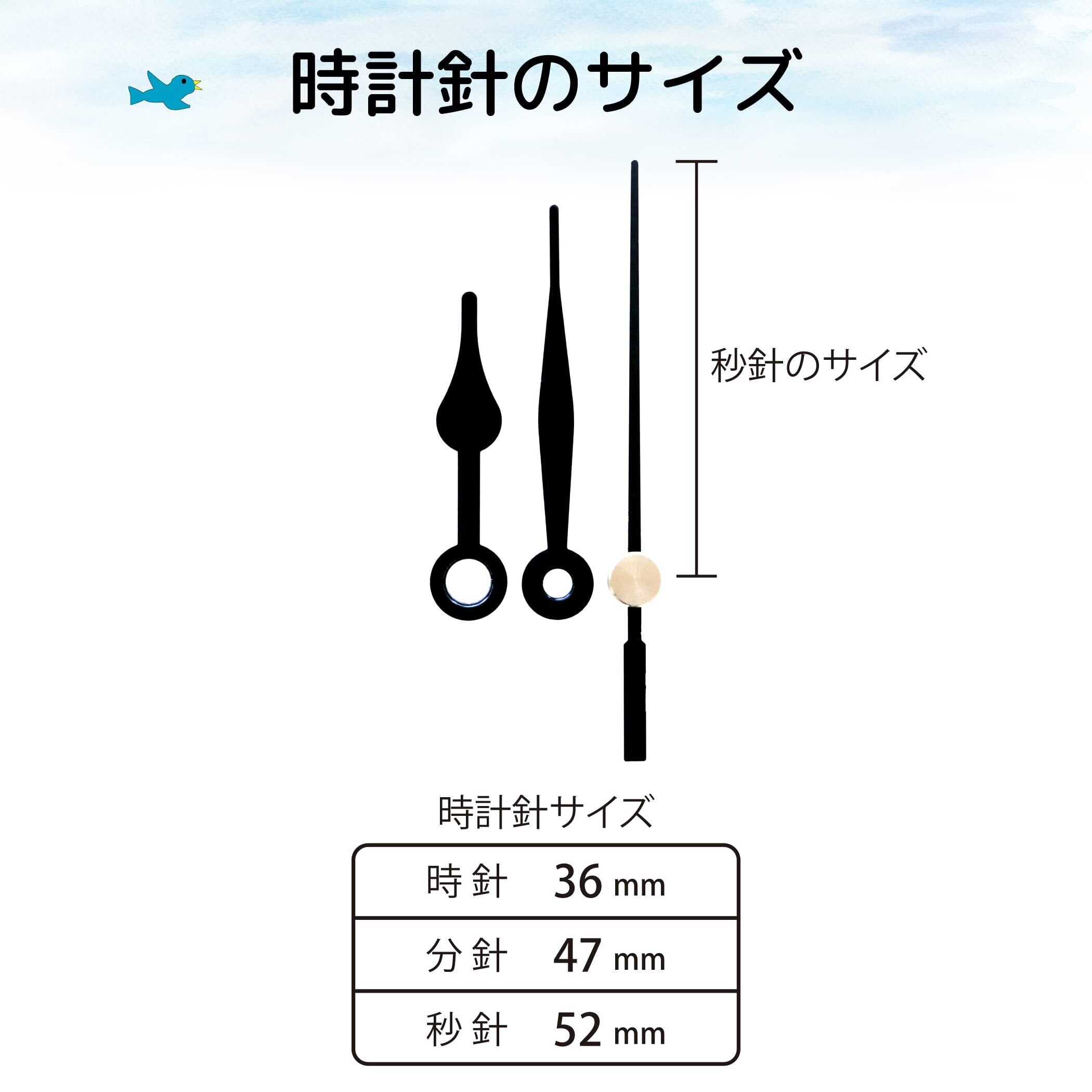 時計針サイズ;時針:36mm、分針:47mm、秒針:52mm シャフト長さ;16㎜(ねじ部分8mm)