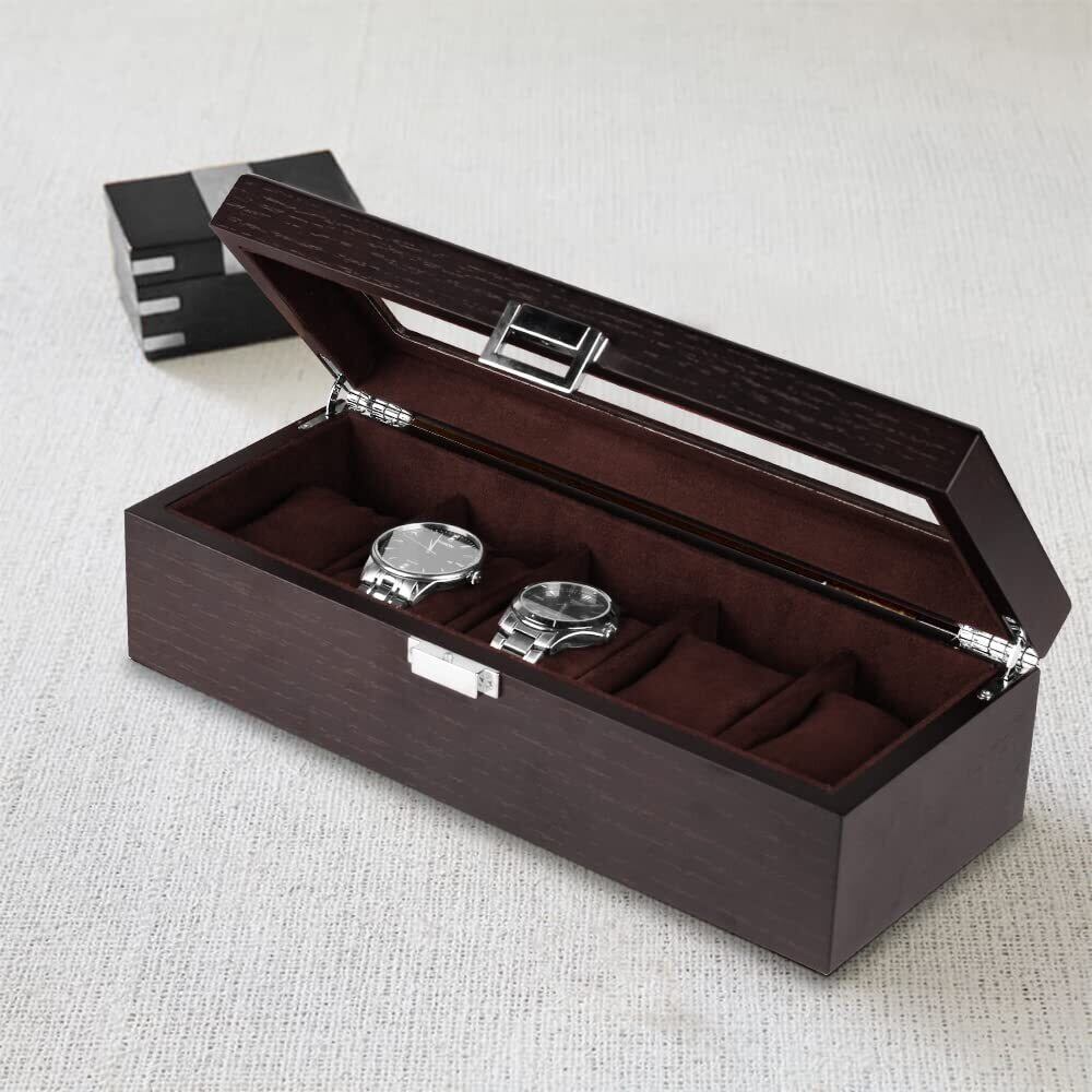 落ち着いた色味の木製収納ケースは大切な腕時計コレクションに相応しい安心感を与えます。シンプルですが、機能的なデザインは深さと直線にこだわり、上品と高級感を与えます。